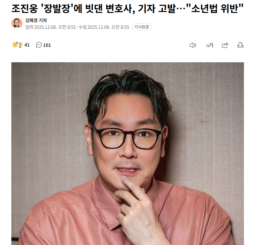 【韩国律师举报揭露赵震雄少年犯前科的记者,称违反《少年法》】 海外新鲜事热点现场 韩国一位律师以违反《少年法》为由,举报了最初报道赵震雄有"少年犯前科"的记者。法务法人湖仁的律师金京浩(音译)于7日在自己的社交媒体上发帖,称最早报道赵震雄少年犯前科的Dispatch社两名记者"违反了《少年法》第70条"。金律师主张称:"(记者)将30年前被封存的判决书翻找出来,公之于众。这是戴着新闻主义面具的明目张胆的暴行。"他还指出:"社会艰难地决定给予未成熟的灵魂'重新开始的机会',这正是制定《少年法》的宗旨所在。"并质疑道:"挖掘30年前一名高中生的过错,果真是2025年大众所必需的'知情权'吗?"金律师接着强调:"《少年法》第70条严格禁止相关机关回应关于少年事件的查询。这是因为法律承认,泄露记录本身可能成为断绝一个人社会生命的凶器。如果记者是通过公务员或内部相关人员获取了这些被禁止的信息,那么这就不是采访,而是非法穿透法律所保护之防御墙的犯罪行为。"他批评道:"本次事件的本质并非'揭露知名演员的过去',而是'商业偷窥癖'嘲弄了法治主义。如果为了点击量而强行打开法律关闭的大门之行为得到容忍,我们社会的矫正系统将崩溃。若因一次失误就要终生受到监视,谁还会梦想改过自新?"同时他补充道:"调查机关必须彻底查明记者获取信息的途径","这不是为了保护特定艺人。是为了给试图凌驾于法律之上的错误媒体权力敲响警钟。"此前,金律师也在6日通过社交媒体发表了一篇题为《2025年的大韩民国,将冉·阿让再次送回了监狱》的专栏文章。他在该专栏中主张道:"正如冉·阿让在19年牢狱之灾后成为马德兰市长救助贫民一样,赵震雄也通过演戏这一艺术,为大众提供了慰藉和快乐,过着改过自新的生活。但是,当今的大众舆论和媒体却成了21世纪的沙威,对他进行追捕。"他还表明了辩护立场:"(舆论和媒体)没有将过去的过错与现在的成就分开,而是烙下了'一次是罪人,永远是罪人'的烙印,最终下达了社会性死刑判决。"