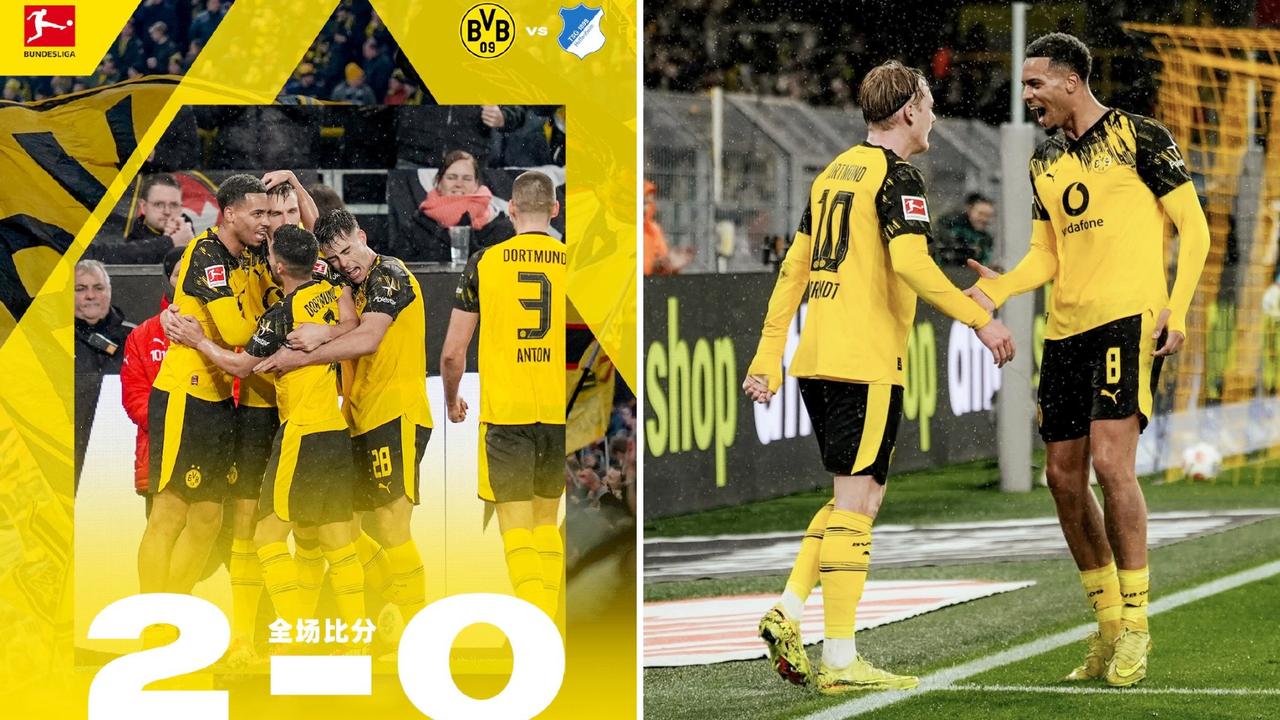 德甲:多特蒙德主场2-0击败霍芬海姆,6轮不败距离榜首9分。 布兰特破门,施洛特贝克建功。
