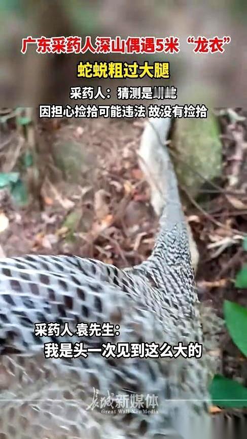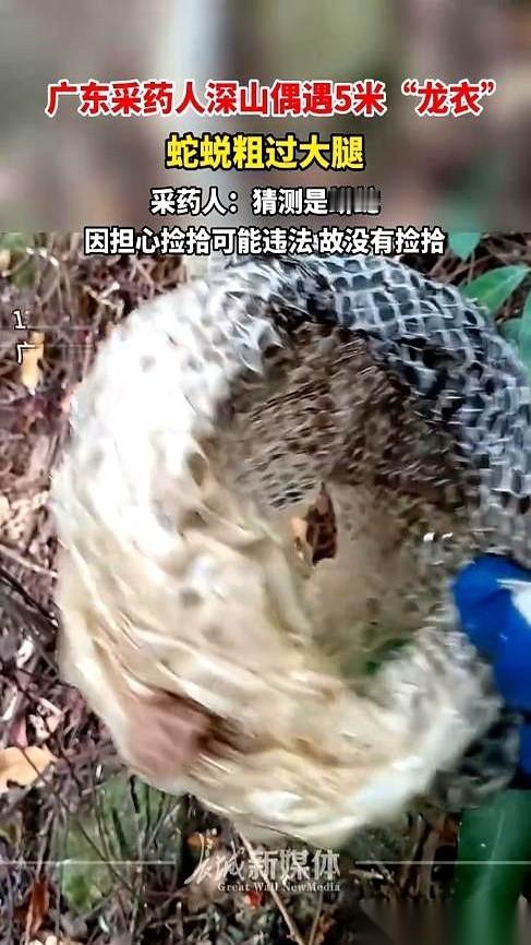 我的天,一张5米长的蛇皮!就这么挂在山上! 大哥去采个药,远远看见一条白色的“丝带”,风里飘啊飘的,仙气十足。 走近一看,魂儿都快吓飞了。 哪是什么丝带,是蛇蜕下来的皮,完整的,一张“龙衣”。 他拿手比了一下,那蛇皮展开比他手掌还宽。 这……这得是条多大的蟒蛇啊?吞个人估计不费劲。 这时候,最扎心的问题来了。 这身“龙袍”的主人呢? 是不是就在附近哪个草丛里,吐着信子,用冰凉的眼睛盯着他看? 想想后背都发麻。 大哥心里那个纠结啊。 这可是宝贝,值钱不值钱另说,光是这稀罕劲儿,就让人心痒。 但又怕啊,一怕蛇回来找他算账,二怕这玩意儿是保护动物的,乱捡犯法。 最后,求生欲战胜了一切。 拍了几张照片,赶紧溜了。 底下评论一堆人喊“可惜”,说“错过一个亿”,说这种自然脱落的可以捡。 嗨,我觉得吧,这事儿真不能站着说话不腰疼。 换你在现场,周围是深山老林,脚下是5米长的蛇皮,你知道蛇就在附近…… 你敢捡吗?你敢多待一秒钟吗? 有时候,最大的宝贝,不是你捡到的那件东西。 而是你平平安安回了家,还能把这个牛逼的故事讲给别人听。