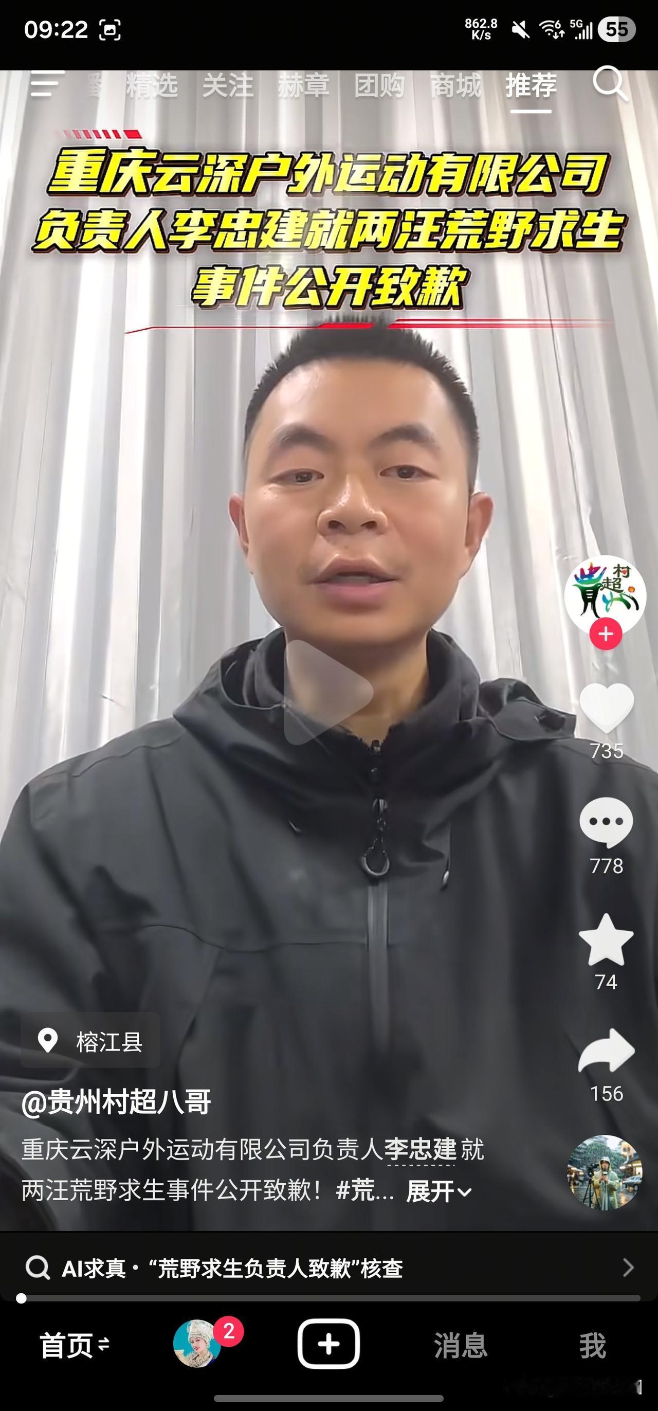 一大早刚醒来,天塌了,重庆云深荒野户外运动有限公司,居然道歉了[捂脸]。昨天晚上,政府刚发布调查,今早就看到主办方以及某些选手就马上道歉的视频了。至于一开始什么事都还没调查清楚,就有人跟风喷榕江的,现在什么感受[捂脸],这年头最不缺流量,和网络无知的弱智。就跟短剧里面的那些无知拱火人一样。