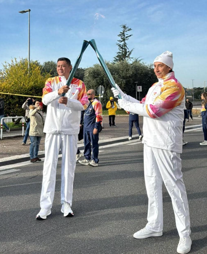 12月7日下午,山东省篮协主席巩晓彬和拳王张志磊在意大利罗马站进行米兰冬奥会火炬传递,张志磊是第27棒,巩晓彬是第28棒,两个人的火炬交接共同展现了来自中国的体育风采。