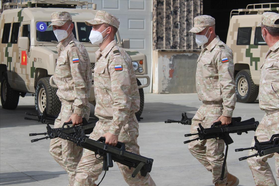 互相体验对方轻武器,解放军拿的AK,俄军拿的95。