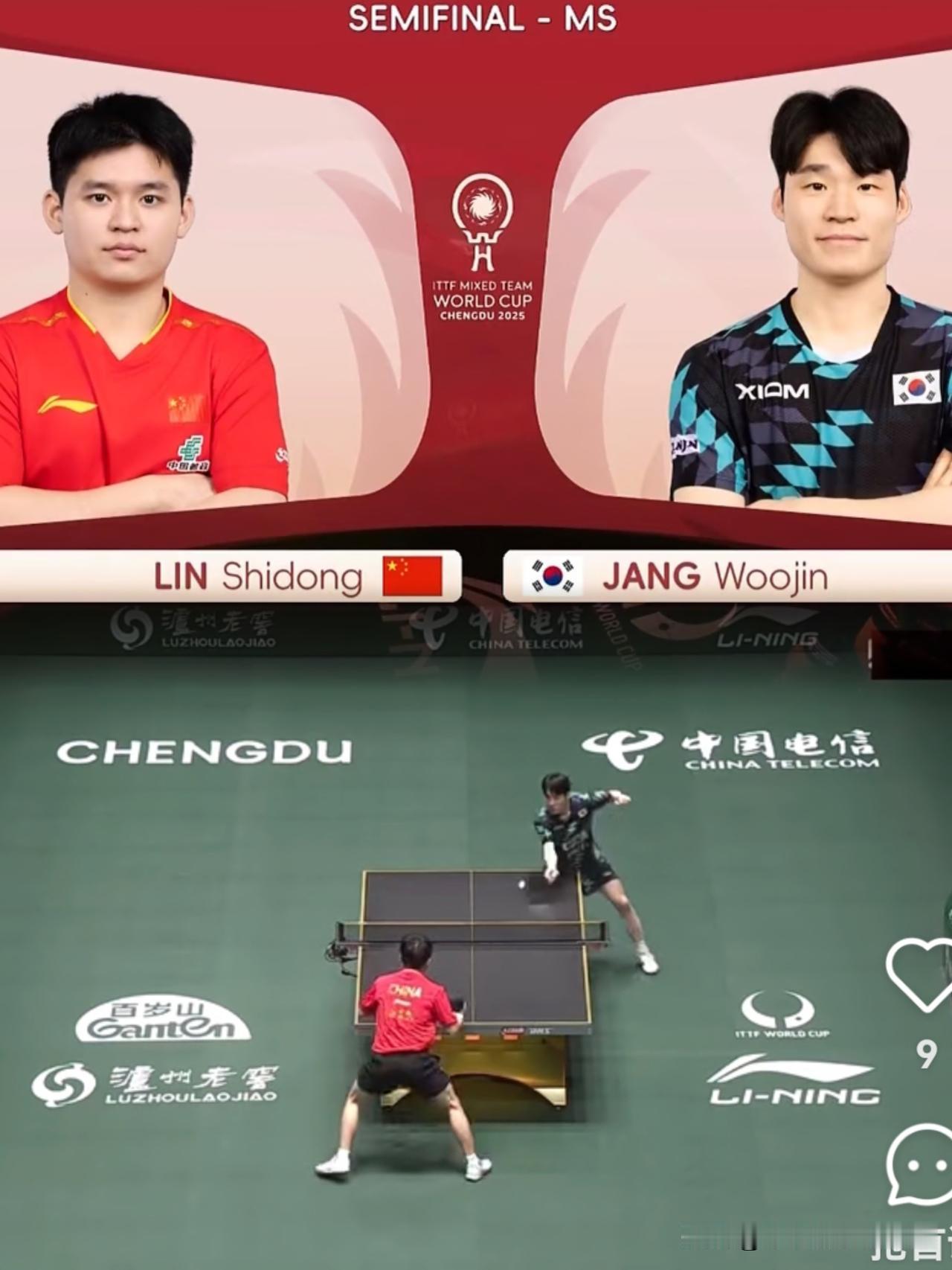 成都混团赛今天进行,林诗栋与韩国张禹珍对阵。在林诗栋与张禹珍的比赛中,林诗栋质疑对方回抛违规,挑战鹰眼。林诗栋没能听懂王楚钦的指示,挑战失败。单局输了,但林诗栋2-1赢得整场比赛,帮助东方大国队晋级决赛。东方大国队在决赛中战胜日本队,夺得混团世界杯冠军!恭喜国乒!