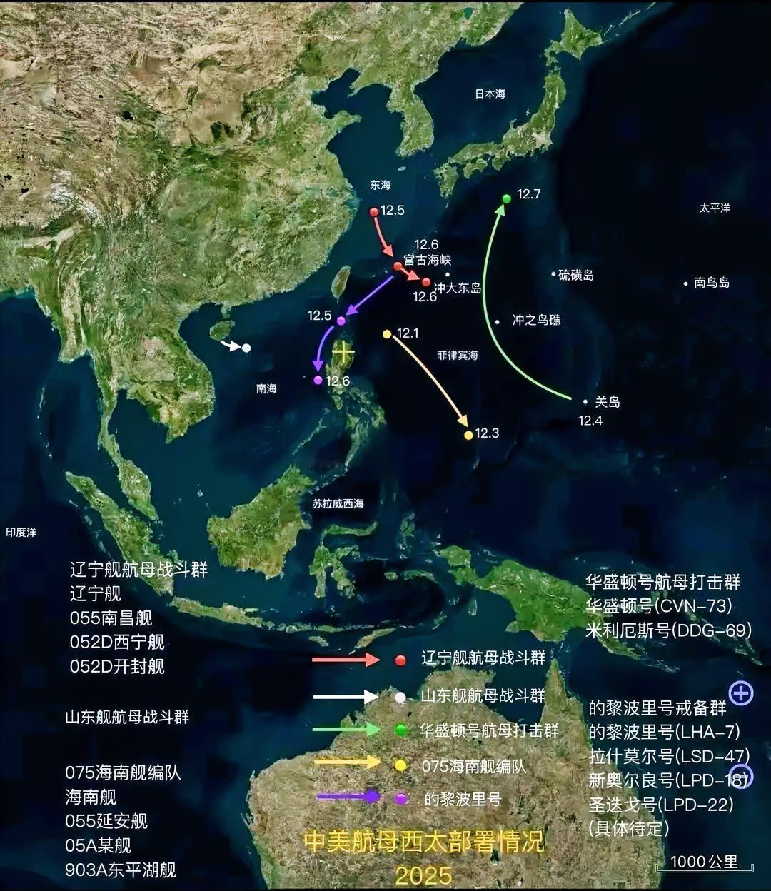 现在西太平洋的海上格局太有看头了!一边是美军常年部署的“老家伙们”,一边是中国海军快速崛起的"后起之秀",双方的航母和两栖攻击舰都在该海域行动,既针锋相对,又老死不相往来。虽如此,但他们的一举一动都牵动着西太平洋地区局势。 先说说咱们中国海军在附近的编队部署,我们有在西太平洋能随时调动的核心力量,堪称"双航母+两栖新锐"的黄金组合。 航母方面,辽宁舰现在已经是西太平洋的"常客",目前辽宁舰航母编队正位于日本冲绳县北大东岛东北约230公里的西太平洋公海海域,正继续向东北方向航行。舰载机每天起降50余架次,实战能力早就拉满了。 山东舰作为国产首舰,排水量6.5万余吨,携带的舰载机比辽宁舰更多,目前山东舰航母编队已经在南海舰队某军港启航,目前在南海与辽宁舰联动,形成"南北呼应"的格局。 两栖攻击舰这边,075型海南舰是绝对的"新锐王牌"。满载排水量4万余吨,能装载两栖战车、气垫登陆艇、直升机,还能搭载1000名海军陆战队员,是一座移动的"立体登陆平台"。 近期海南舰编队正持续南下并开展实战化训练,编队包含海南舰、延安舰、通辽舰及骆马湖舰。其动向受到美国、澳大利亚等国高度关注。11月30日,新西兰卫星情报公司的卫星在菲律宾吕宋岛以东发现该编队,大有前往澳大利亚的态势。 再看美军在西太平洋的部署——表面上还是"航母+两栖攻击舰"的双轨模式,但其实已经悄悄"缩水"了。航母方面,美军现在驻西太平洋的是"乔治·华盛顿"号,母港在日本横须贺,常期和日本自卫队的"准航母"搞联合演练,目前已经结束部署状态,大概率是回母港横须贺。 两栖攻击舰方面,美军现在靠"的黎波里"号编队撑场面,今年6月刚接替"美利坚"号进行驻日部署,主打一个"闪电航母"概念,能搭载F-35B垂直起降战机,试图弥补航母的空情覆盖缺口。 但F-35B的航程和载弹量都不如常规舰载机,实战中能不能扛住压力还是个问号。"美利坚"号被调到澳大利亚参加演习,导致西太两栖攻击舰一度只有"的黎波里"号孤军奋战,所谓的"双层覆盖"名不副实。 美海军的思路是"全球威慑",西太平洋只是它的一个战区,航母和两栖攻击舰经常要跨区域调动,它的部署模式越来越依赖盟友,比如"华盛顿"号必须和日本舰艇组队才能形成有效战力,一旦盟友配合不默契,战力就大打折扣。还有美军的"快进快出"战术,看似灵活,实则暴露了补给不足的问题。 咱们的思路则是"区域拒止+主场防御",航母和两栖攻击舰都围绕西太平洋和南海展开部署,有岸基导弹、预警机、卫星网络当后盾,能够形成"海陆空一体"的防护网。美军航母离本土太远,虽然在日本有基地,但远没有我们的优势大。咱们的舰艇维修和补给都在自家门口,辽宁舰训练完能快速返回母港休整,美军则要依赖横须贺、关岛等少数几个港口,一旦有事根本来不及反应。 咱们的舰艇是"体系化作战",航母负责争夺制空制海权,两栖攻击舰负责立体投送,055大驱负责防空和远程打击,各司其职又能协同作战;而美军现在就是"拆东墙补西墙",航母不够两栖攻击舰来凑,试图用"闪电航母"弥补战力缺口,但本质上两栖攻击舰不能完全替代航母的作用,反而会让自身防御漏洞变大 。 西太平洋的海上力量对比,已经从美军"一家独大"变成了"中美制衡"。虽然美军舰艇吨位大、经验丰富,但架不住全球部署精力分散、补给线过长。我们胜在主场优势明显、体系完整、舰艇状态新,而且每一艘舰艇都能发挥最大战力。 未来几年,随着咱们新航母的服役和更多两栖攻击舰的入列,这种制衡格局还会进一步巩固。毕竟在西太平洋,咱们是"守家卫国",美军是"远道而来",谁能笑到最后,咱们就拭目以待吧! 晒图笔记大赛