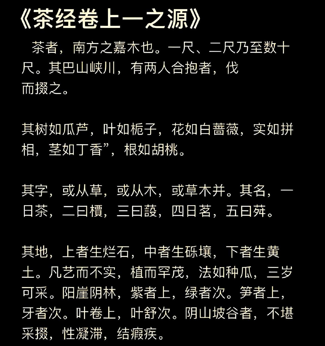 茶与《茶经》:一盏茶香里的千年智慧 "茶者,南方之嘉木也。" 翻开《茶经》,1300年前的茶香扑面而来。这部世界上第一部茶学专著,不仅记录了唐代的饮茶风尚,更将一片叶子升华为东方美学的象征。作者陆羽,一个被遗弃的孤儿,因茶结缘,终成"茶圣"——他的故事,比茶汤更耐人寻味。 《茶经》开篇便为茶正名,从植物学特性到产地分布,事无巨细。陆羽笔下的茶树"其树如瓜芦,叶如栀子",生长环境讲究"上者生烂石,中者生砾壤"。更妙的是,他首次系统划分了茶叶品类,为后世绿茶、红茶等分类奠定基础。 书中详细记载了从采茶到饮茶的完整流程: 采茶:"凡采茶,在二月、三月、四月之间" 制茶:杀青、揉捻、烘焙,工序严谨 煮茶:首创"二十四器",连烧水用的风炉都刻着"伊公羹"的雅称 品饮:讲究"三沸之法",将饮茶升华为视听盛宴 "精行俭德"四字,道出茶道精髓。陆羽将饮茶与儒家修身结合,唐代文人雅集必备茶事,日本茶道亦由此发端。书中"茶之为用,味至寒"的记载,更暗合中医养生智慧。 从唐代宫廷到现代茶馆,《茶经》的智慧仍在流淌。它教会我们:一叶见方寸,一茶观世界。在这个快节奏时代,重读《茶经》,或许能找回"人在草木间"的悠然心境。历史