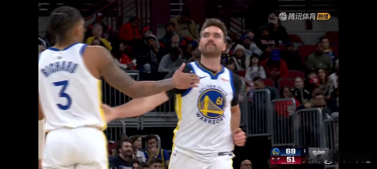 勇士123比91大胜公牛!勇士是在几乎让一套首发的前提下完成的! 库里、塞斯库里、格林、霍福德、库明加均不出战仅巴特勒出战还能大胜! 勇士这帮青年军在巴特勒的带领下全民皆兵!用22记三分射穿公牛防线!完爆全主力阵容的公牛! 积极的勇士篮板竟然也50比38领先公牛!连续两场在主力缺阵的情况下战胜对手,彻底打出自信了! 勇士队:波杰姆斯基21分8板7助攻!梅尔顿13分!穆迪11分!巴特勒19分8板6助攻!波斯特19分!斯宾塞12分5板6助攻! 公牛队:吉迪18分!