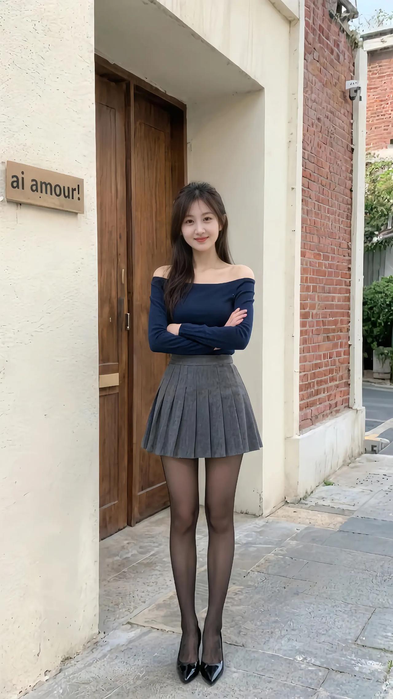 法式优雅穿搭,黑色高跟鞋与灰色百褶裙的完美搭配,尽显时尚魅力!
