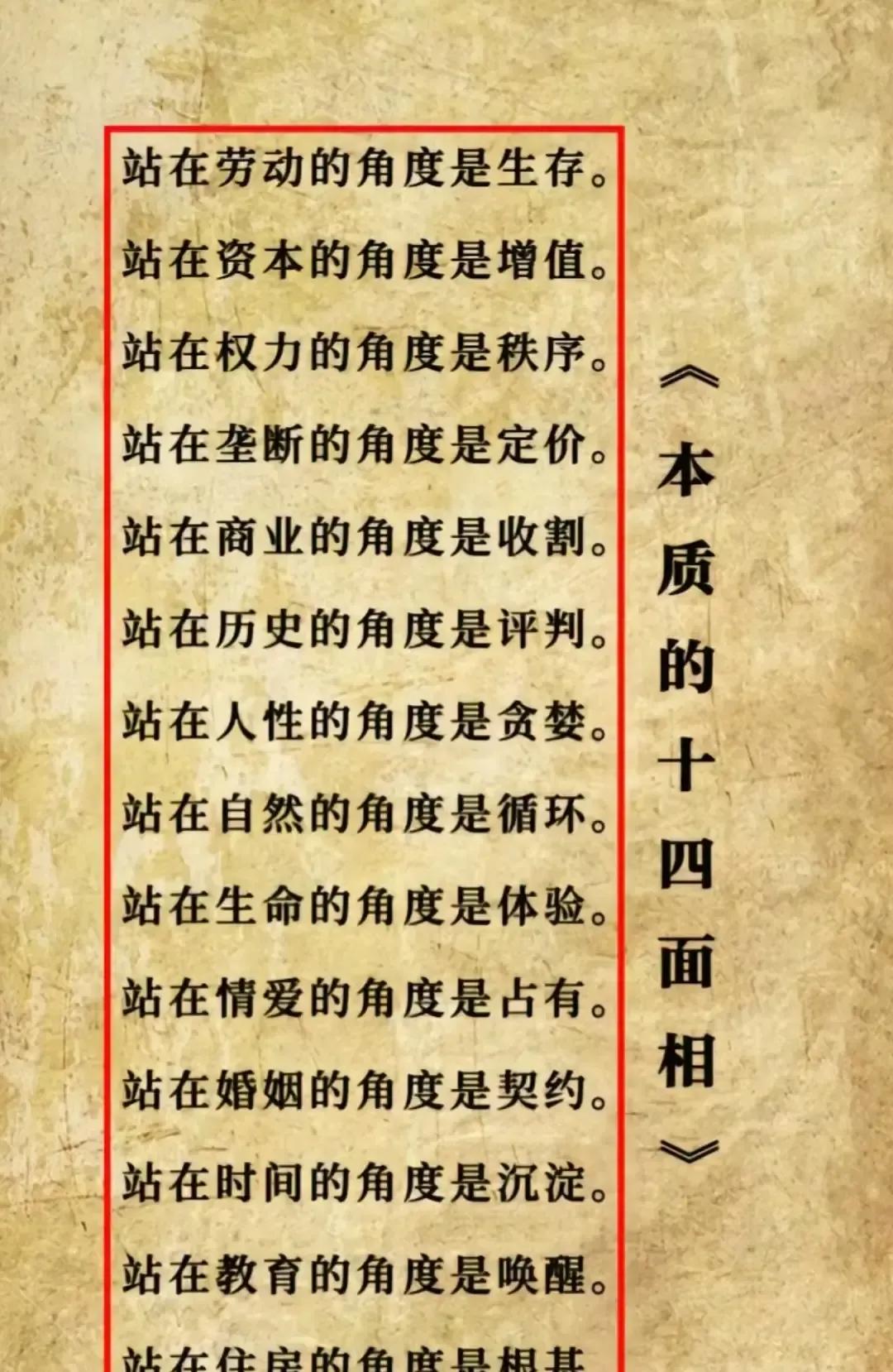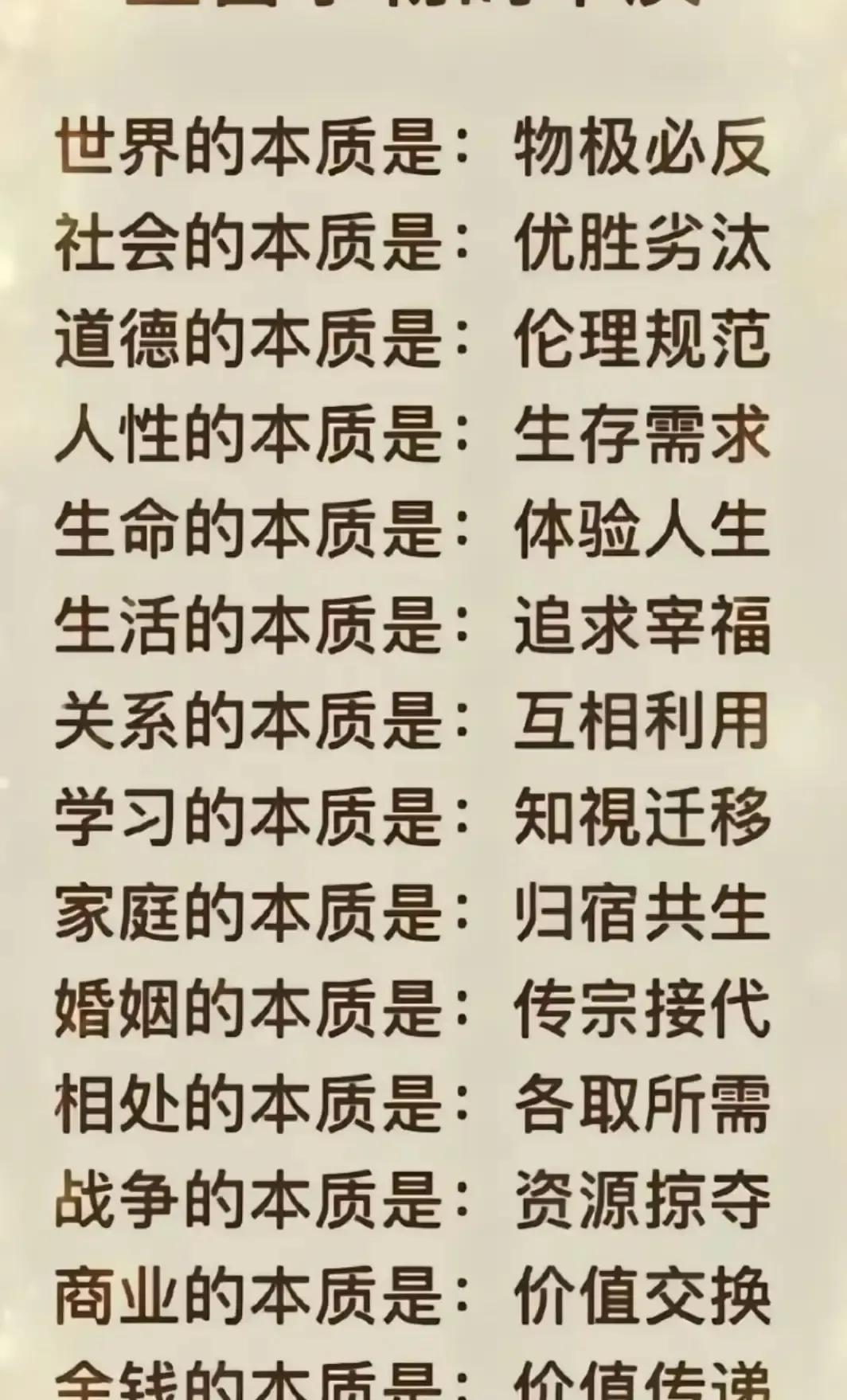网上突然冒出一段“战争是转移矛盾”“婚姻是经济契约”的狠话,没图没视频,纯文字,却像深水炸弹,三天内从微博炸到B站,再被小红书剪成情绪短视频。 我刷到时,评论区已经吵翻天,有人喊清醒,有人骂冷血,点赞最高那条说“终于有人把遮羞布撕了”我盯着屏幕愣半天,脑子里全是房贷、彩礼、裁员、加班,这些天天挂在嘴边的词,被几句话扒得只剩骨头,血淋淋地摆在那儿。 以前觉得宏大叙事离自己远,现在发现它就在出租屋的电费单里,在爸妈催婚的语音里,在老板画的大饼里。 看完那一刻,确实爽,像有人替你吐了口憋十年的痰,可爽完只剩凉:如果连爱情都要算ROI,那人还剩啥? 我默默关掉手机,去厨房煮面,水开的声音盖过了心跳,却盖不住那句“你所谓的安稳,只是别人设计的稳定收割” 观点再锋利,日子还得自己一口一口嚼。 别让解释世界的句子,变成扔向自己的刀子。