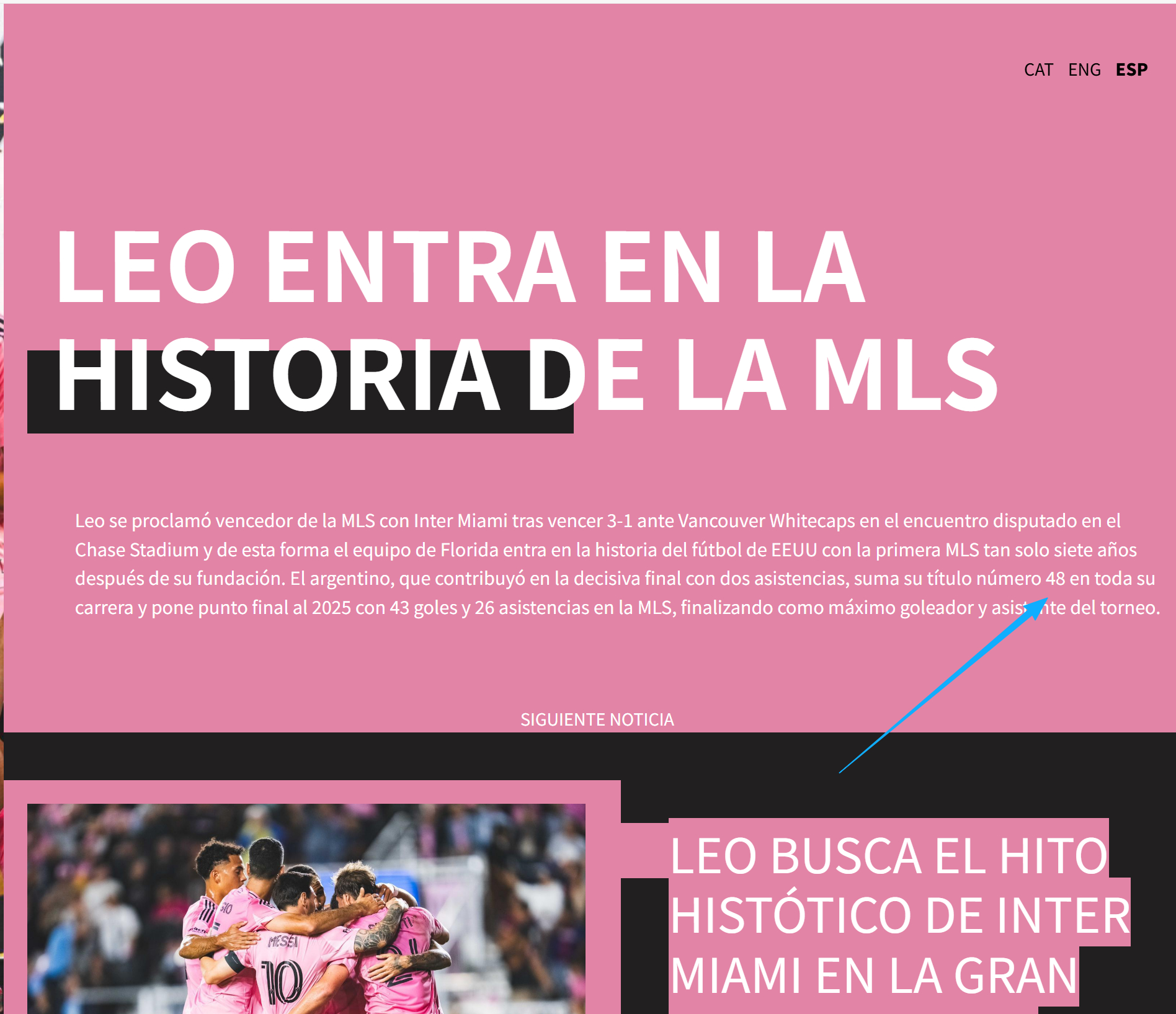 48冠🏆梅西官方网站:梅西在美职联总决赛中贡献两次助攻,将个人职业生涯总冠军数提升至48座,同时以单赛季43粒进球和26次助攻的数据加冕美职联射手王和助攻王,为2025赛季画上完美句号。迈阿密国际首夺总冠军梅西发文说我们是MLS冠军梅西
