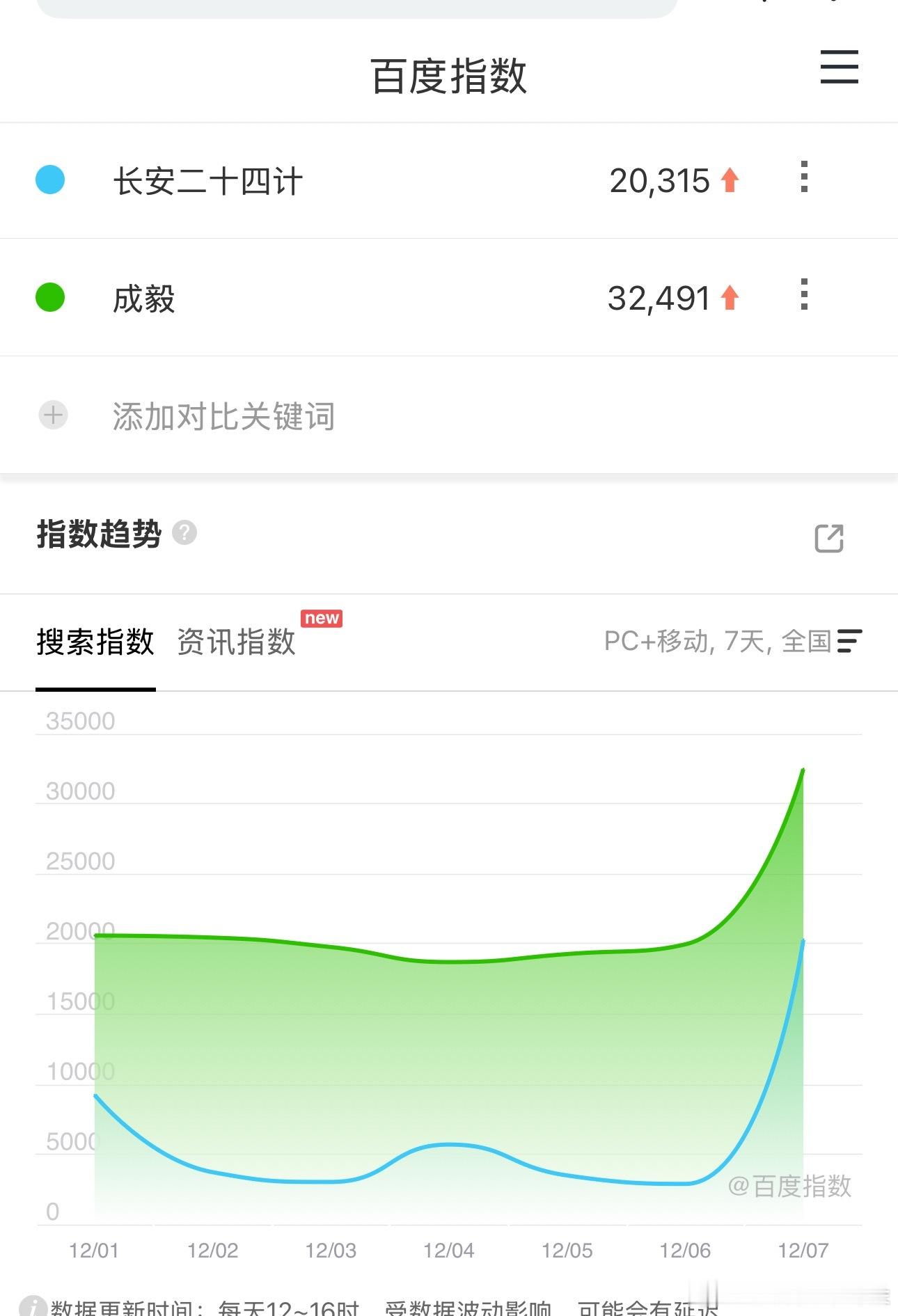 长安二十四计定档日百指2W,很好的数据了。成毅的个指也飙升到3.2W,这部剧他这