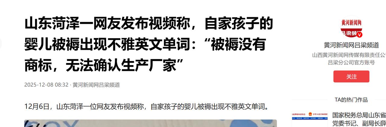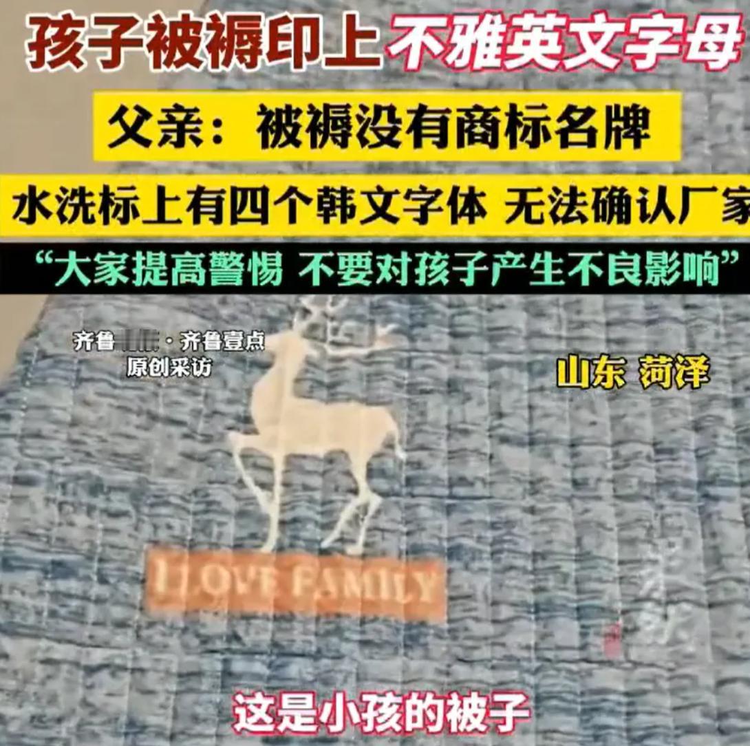 “这个真忍不了!”山东菏泽,一男子在家收拾东西,突然翻出一个小孩的被子,正面看着还正常,可反面一看,全都是不雅的英文词汇,男子越看越生气,直接发到网上曝光,呼吁加强儿童用品审核 在家大扫除真的能扫出各种意想不到的东西,山东菏泽的刘先生最近就遇上这么一件糟心事,气得他好几天都没顺过气,直言 “这个真忍不了!”这床被子看着平平无奇,正面印满了五颜六色的卡通图案,小兔子、小花朵挤在一起,一看就是给小宝宝用的,软乎乎的面料,摸起来也还算舒服。 刘先生回忆,这是好几年前朋友送的礼物,说是某个知名奶粉品牌的附赠品,当年家里不缺被子,他连外包装都没拆,就随手塞进柜子里了,这一放就是好几年,要不是这次彻底大扫除,恐怕还得一直藏在里面,不知道要瞒到什么时候。 本来想着要是还能用,就送给亲戚家的小孩,可当他随手把被子翻过来,准备看看有没有破损的时候,眼睛一下子就挪不开了,紧接着一股火气直接从胸口窜了上来。 被子的背面,密密麻麻印着好几行英文单词,不是什么可爱的儿歌歌词,也不是温馨的祝福语,而是 “younggirl”“sexy” 这种带着明显性暗示的词,更过分的是还有一个拼写虽然有点错,但意思昭然若揭的 “fuk”,光看着就让人觉得刺眼又恶心。 刘先生越看越气,手里的被子都快攥变形了。这可是给小孩子用的东西啊,是每天要贴身盖在身上、裹着孩子睡觉的被褥,怎么能印上这种乱七八糟的东西? 别说给小孩用了成年人看着都觉得尴尬又冒犯,一想到要是当年没放起来,真给孩子用了说不定哪天孩子识字了,指着这些词问是什么意思,他都不知道该怎么解释,想想就后背发凉。 他压着怒火,把被子里里外外翻了个遍,想找找生产厂家的信息,哪怕是个联系方式也行,好歹要讨个说法,可翻来覆去看了半天,除了水洗标上有四个看不懂的英文字母,连个正经的厂家名字、地址都没有,完全就是一床 “三无产品”,谁能想到这么一个打着知名奶粉品牌附赠品旗号的东西,居然连最基本的生产信息都没有,这也太离谱了。 气不过的刘先生,直接把被子的照片发到了网上,吐槽这件糟心事儿,呼吁大家给孩子买东西的时候多留心,也希望相关部门能加强对儿童用品的审核,别再让这种乱七八糟的东西流入市场。 帖子发出去之后,很快就引起了不少人的关注,大家都跟着气不打一处来,有人说这肯定是小作坊做的,工人没文化,随便在网上找了个图案就印上去了,根本不知道这些词是什么意思。 可刘先生觉得这种说法根本站不住脚,这几个词也不是什么生僻词,稍微懂点英语的人都能看明白,而且印得这么密集,指向性这么明确,怎么看都不像是无心之失,更像是有人故意为之,说不定就是生产环节里有人搞恶作剧,完全没考虑到这是给孩子用的东西,退一步说就算是工人不懂,厂家的审核环节呢?品牌方的把关呢?难道就没人检查一下吗? 其实仔细想想,这事儿也暴露了一个大问题,就是大家对赠品的忽视,不管是买奶粉、买护肤品,还是买其他东西,遇到附赠的小物件,很多人都会觉得 “反正是白送的,凑合用就行”,不会太较真。 可偏偏就是这种 “白送的” 东西,最容易出现问题。品牌方为了控制成本,可能会把赠品的订单包给一些小作坊,审核流程根本就是走个过场,甚至完全不审核,而我们作为消费者,买东西的时候注意力都放在主商品上,对附赠的东西,尤其是给孩子用的纺织品、小玩具,往往看一眼图案好看、摸起来还行,就放心收下给孩子用了,根本没想过要翻过来看看,更没想过要检查生产信息。 刘先生说,他现在想想都后怕,还好当年没给孩子用,也还好这次大扫除翻出来了,不然这个 “定时炸弹” 还不知道要藏多久,这件事也给所有家长提了个醒,给孩子用的东西,真的不能有半点马虎,不管是花钱买的,还是别人送的赠品,不管是新的,还是压箱底的旧物,都得里里外外看仔细。 别只盯着正面的卡通图案好看,多翻一翻背面,多看看内衬和边角,检查一下有没有奇怪的图案、文字,有没有生产厂家的信息,别等出了问题才后悔,儿童用品,关乎的是孩子的健康和成长,哪怕是一件小小的被子,也不能敷衍了事。 希望这件事能真正引起重视,不管是品牌方,还是生产厂家,都能多上点心,把好审核这一关,别再让这种带着恶意的东西伤害到孩子,也希望我们每一位家长,都能多一份细心,少一份侥幸,给孩子把好关,让孩子用的每一件东西,都能真正让人放心。 毕竟孩子的世界本该是干净纯粹的,不该被这些藏在卡通背后的污秽所打扰,这种糟心事儿,真的一次都不能再有了。 (信息来源:黄河新闻网吕梁频道——山东菏泽一网友发布视频称,自家孩子的婴儿被褥出现不雅英文单词:“被褥没有商标,无法确认生产厂家”)