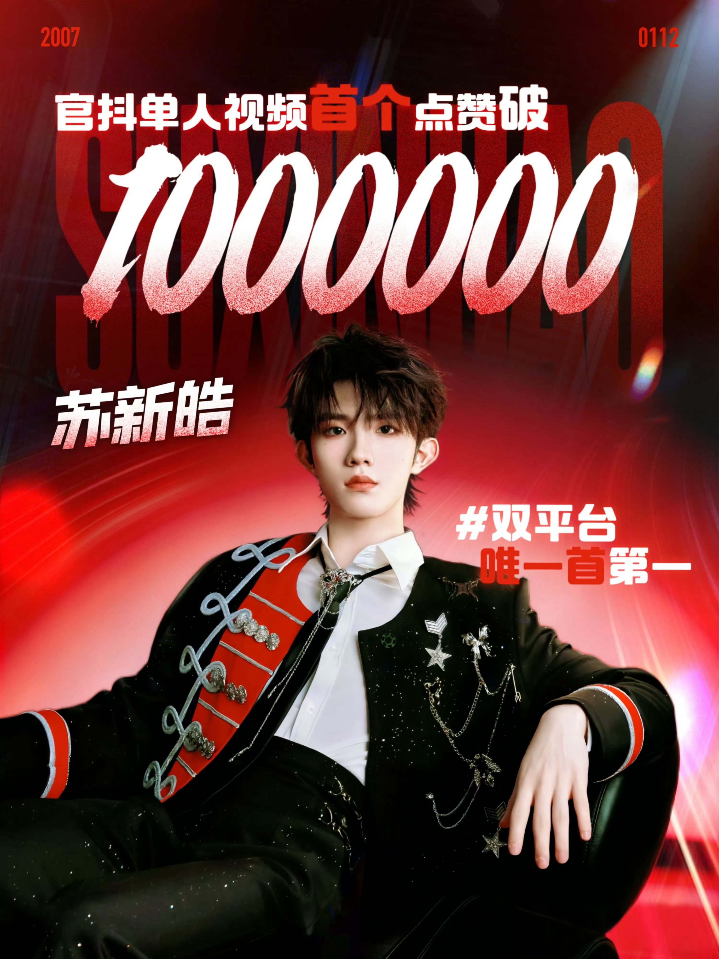 【苏新皓】苏新皓forget抖肩舞cha点赞破百万了,TOP官抖最快破百万的单人cha,人气实力大TOP就是TOP苏新皓抖肩舞cha点赞破百万苏新皓首个破百万cha