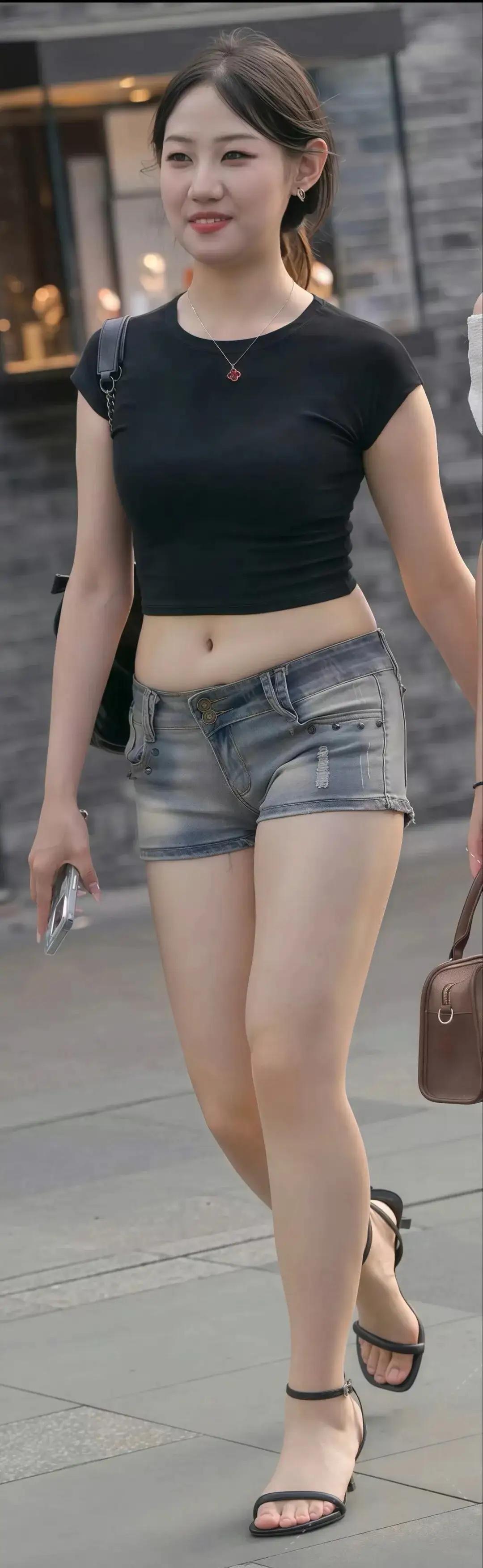 街拍短裤搭配牛仔短裤穿搭 街拍风穿搭 简约短裤穿搭 女短裤穿搭 紧身短裤穿搭 高腰热裤穿搭 黑色热裤穿搭
