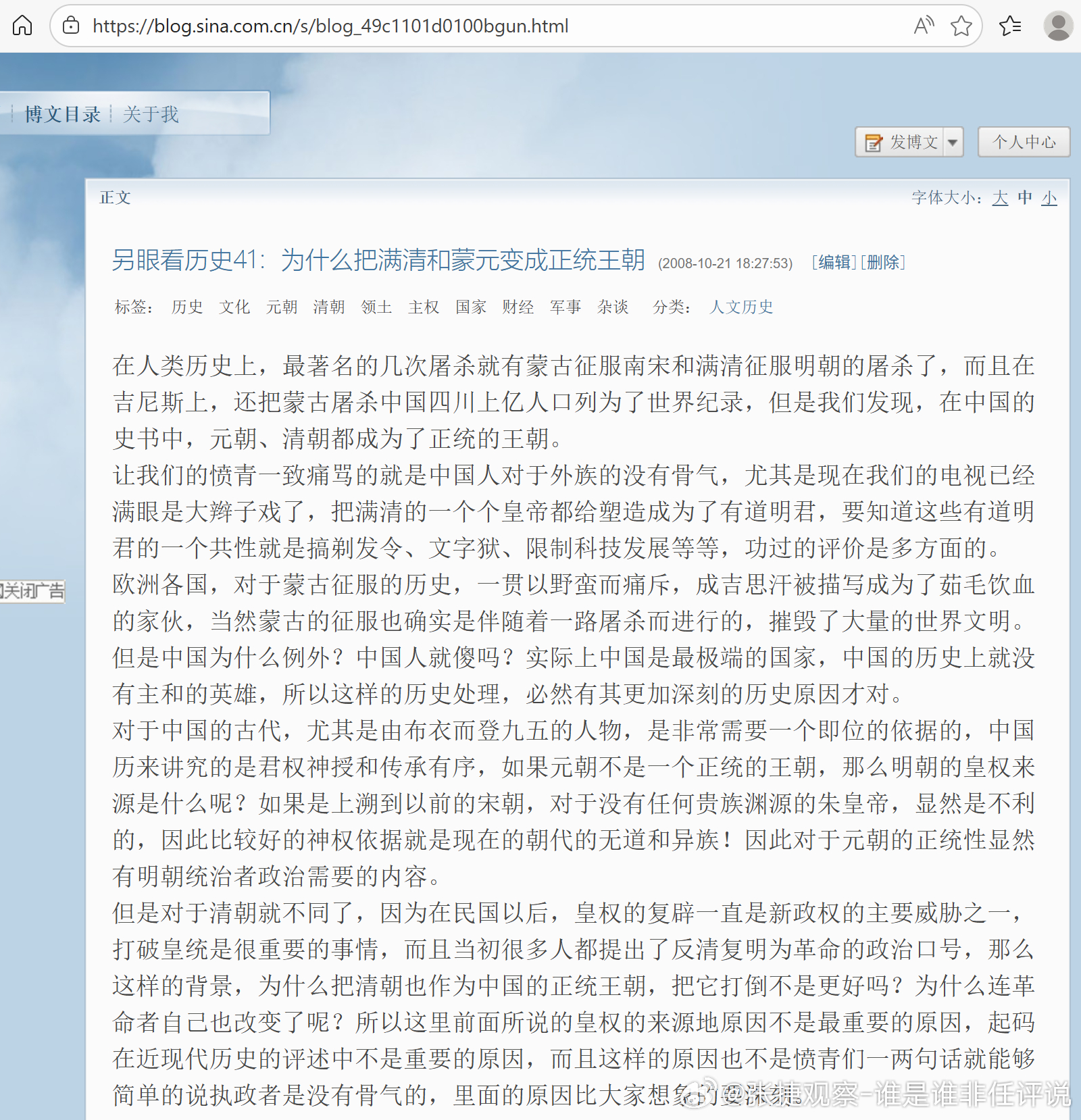 #张捷盘历史# 关于吃瓜的XX非中国论,一群小嫩黄要我上原视频,这个是有人传播的话术,你上她原视频等于给她再传播,等于又放毒一遍。另外还有我的粉丝不断给我转她的原视频,似乎是说咱断章取义没有看清楚她的真实意思,我还真的再看了一遍确认,其立场和包藏祸心是更明确了。她虽然没有直接讲XX非中国,但人家讲后来日本拿着废帝讲XX是中国,来挟天子令诸侯,你说她给大家传达的是什么?她的粉丝是坚持日寇立场的人群吗?这里她有多处真话不全说的,还有真话不该说的,我们会一一分析的。首先就是她讲朱元璋对元朝正统的反复,这个明显是借古讽今,所以她的水军里面1450特别多,她没有说洪武二十年之后为啥变了,中间的历史大事件给她漠视了,这个变化就是蓝玉在捕鱼儿海彻底的打败了北元,就如我们肯定要说解放前的中华民国是中华正统的,但解放后的“中华民国”是台湾省,正统的是中华人民共和国,这里你就明白她在内涵和阴阳什么了!为啥中间忽略关键内容?为啥1450都在给她助力!另外她还说了建国后我们也讲了XX是侵略,但这背后是我们因为苏修胁迫因此丢失了蒙古,是真话,但揭伤疤,又不讲背景,我想这不是满汉问题,满遗问题,就算你的H汉,你支持蒙古脱离中国吗?所以说很多是被她忽悠的小嫩黄。对XX是否中华的问题,我早写过文章了,立场清楚。她真话不全说后面更大的问题,我们会一步步分析,先说没有满汉矛盾的,让大家容易认清楚,统一思想。