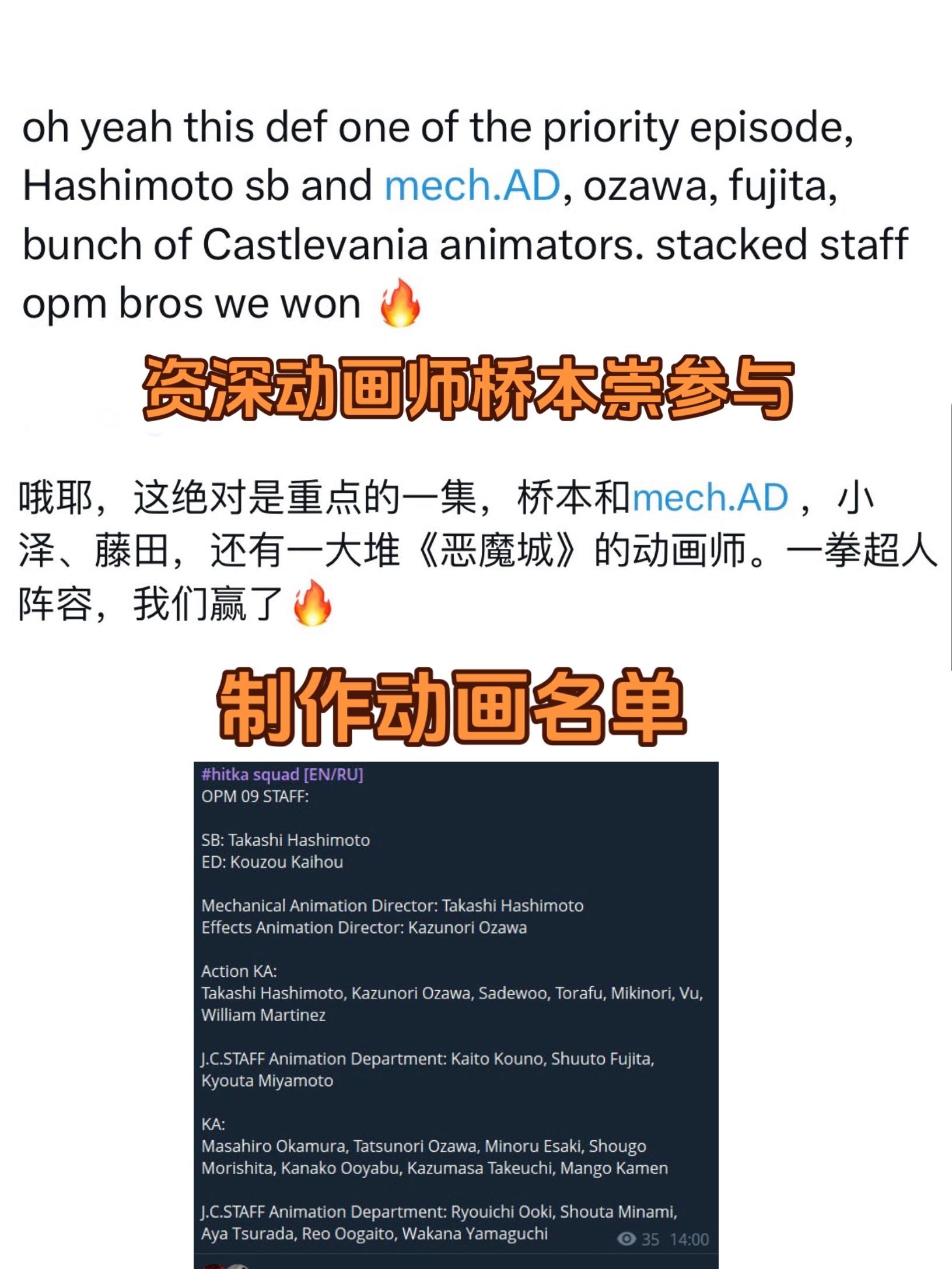 关于《一拳超人》动画第三季第九集。在第九集没播出之前的一些想法与资讯...