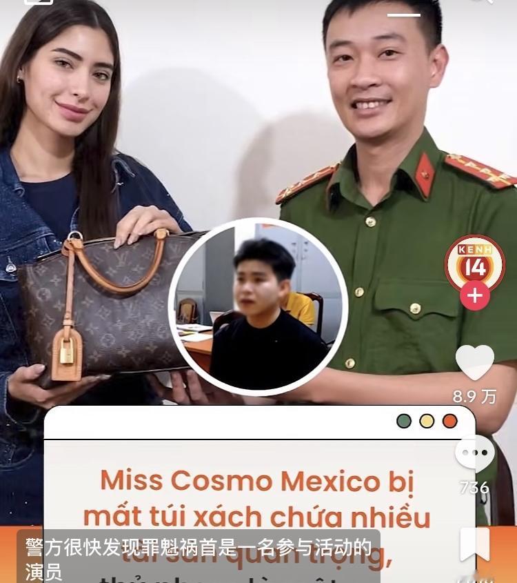 越南演员偷了墨西哥小姐的品牌包,包里有4000万现金和信用卡,相机等其他贵重物品,胡志明警方在13个小时内追查并抓捕了这名演员,并归还了包包 越南网友评论:你得尽快帮我找到丢失的那辆车、外国人丢失东西就会像闪电一样快速地寻找