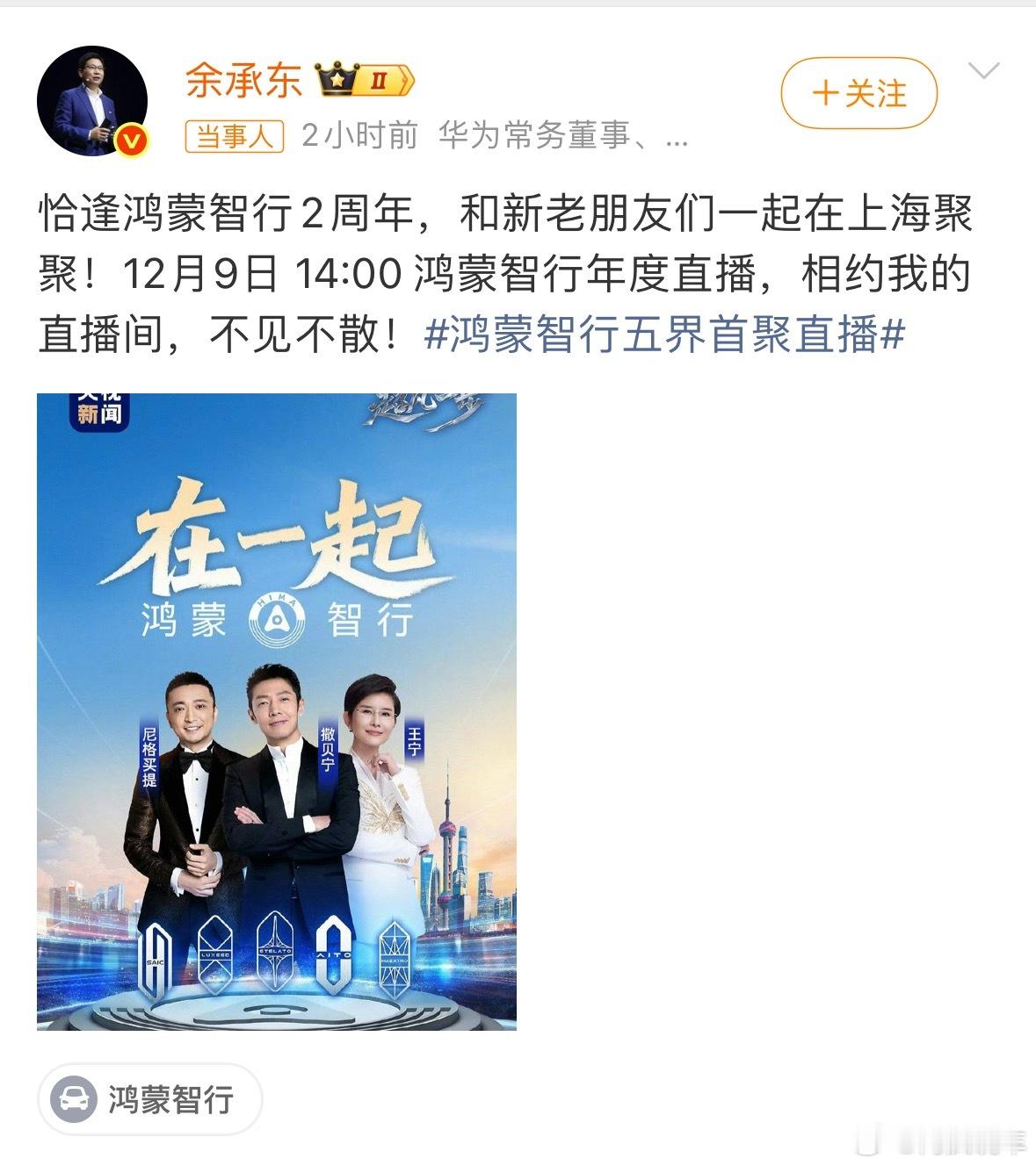 鸿蒙智行五界首聚直播鸿蒙智行才2周年,就已经实现了“百万交付”,五界也都以不同的定位,站稳了各自领域的市场。这次的五界同台感觉会公布更多惊喜,这不得蹲一波?