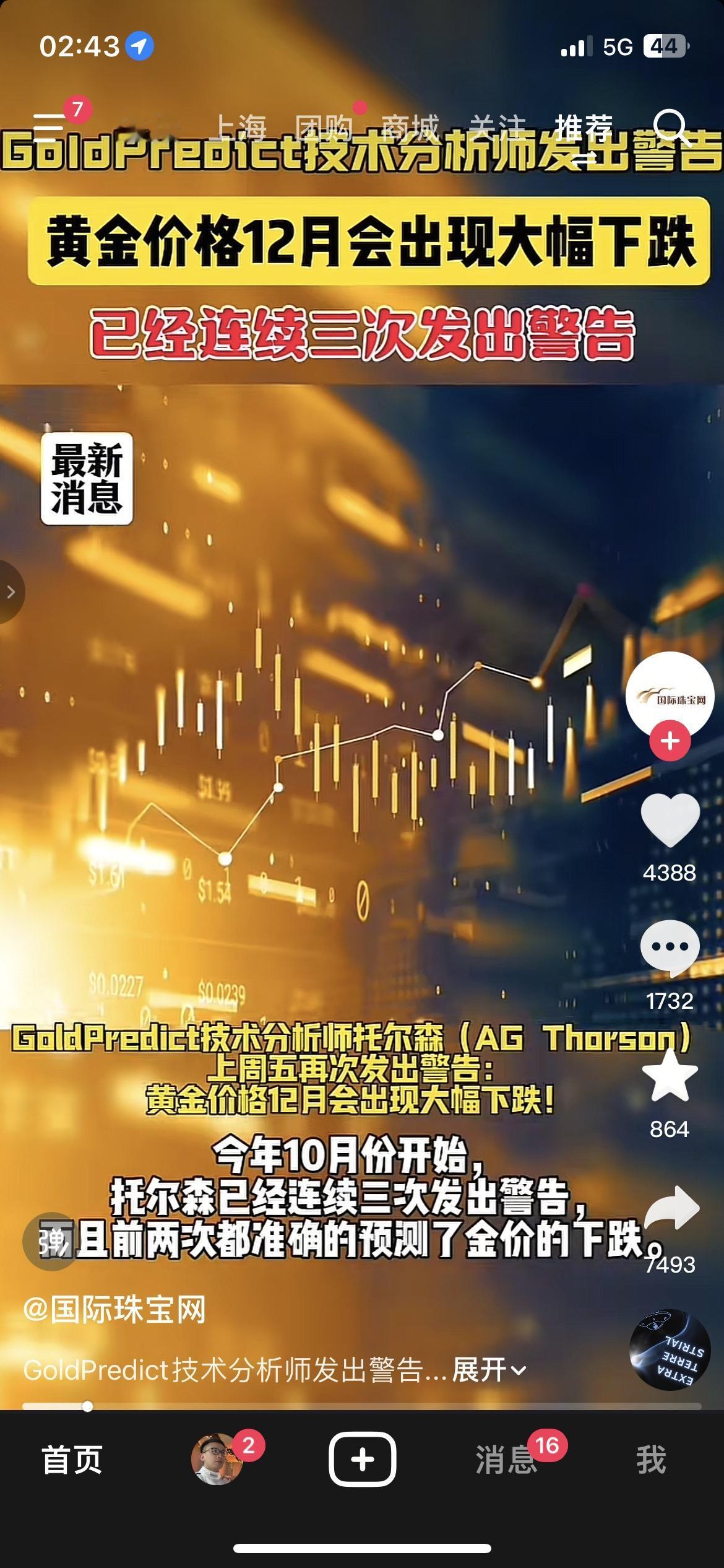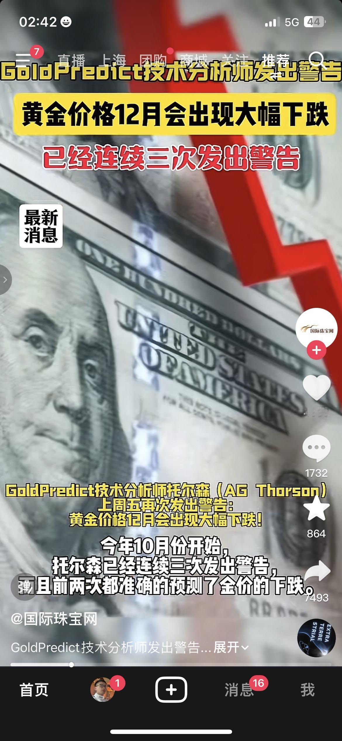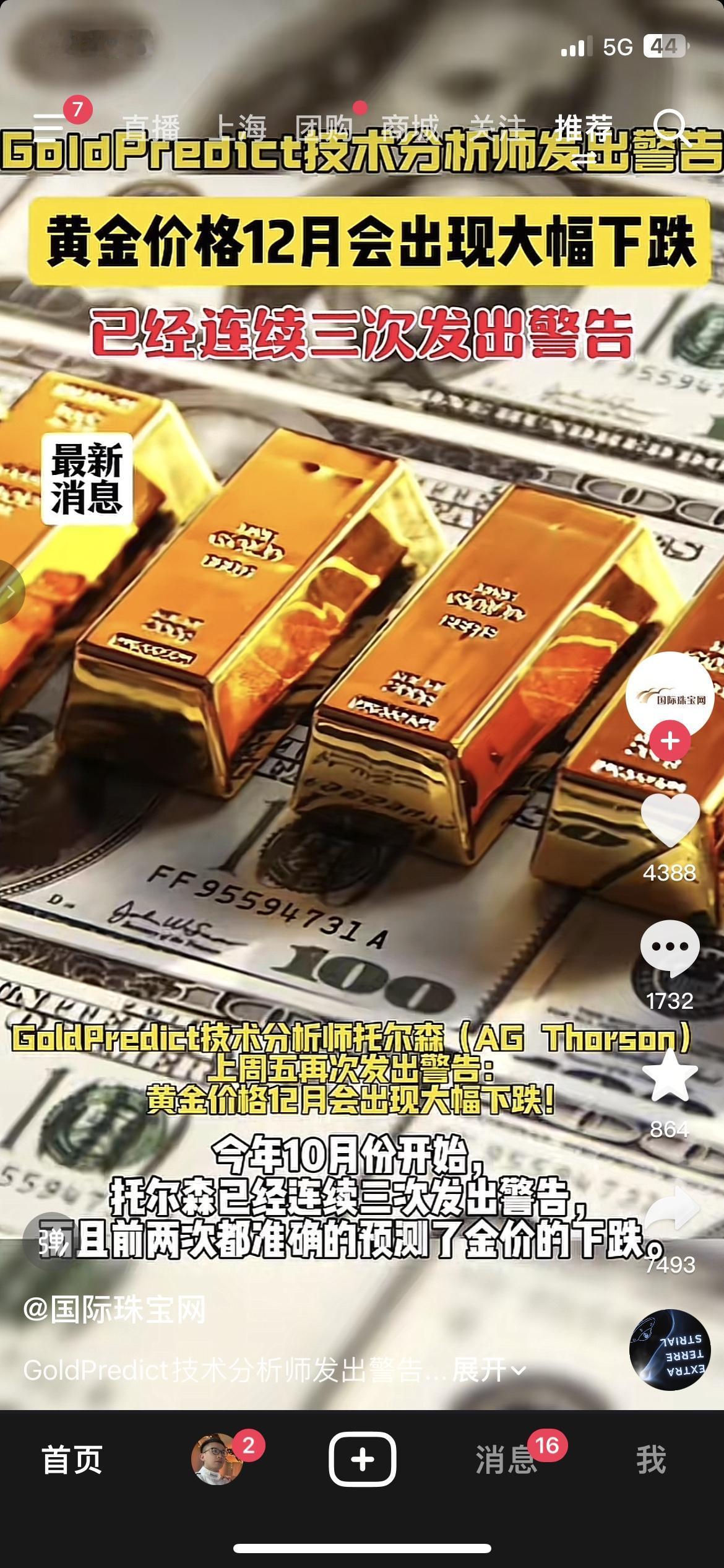 紧急提醒!黄金要大跌?分析师已连中两次,现在信号实锤了! 兄弟们抓紧看!关注黄金的千万别错过,专业分析师再次预警:12月黄金大概率大幅下跌,这次真得重视! 这人是真靠谱,前两次预判全中!10月说金价见顶,当天就跌超100美元,精准踩顶;11月喊回调,金价直接跌到3800多,趋势一点没差。 他早说过,金价跌破4146美元就彻底反弹结束,结果这两天直接跌到4064美元,信号完全对上了。 手里有黄金想变现、或是想抄底的都得留心,连续两次精准预判的信号真不能忽视,但也得理性看待,毕竟前两次准不代表这次一定稳,谁也没法百分百预判行情,别盲目跟风亏了才后悔。 你们觉得这次还能中吗?手里有黄金没?评论区聊聊!黄金行情价格 黄金价值分析 黄金参考