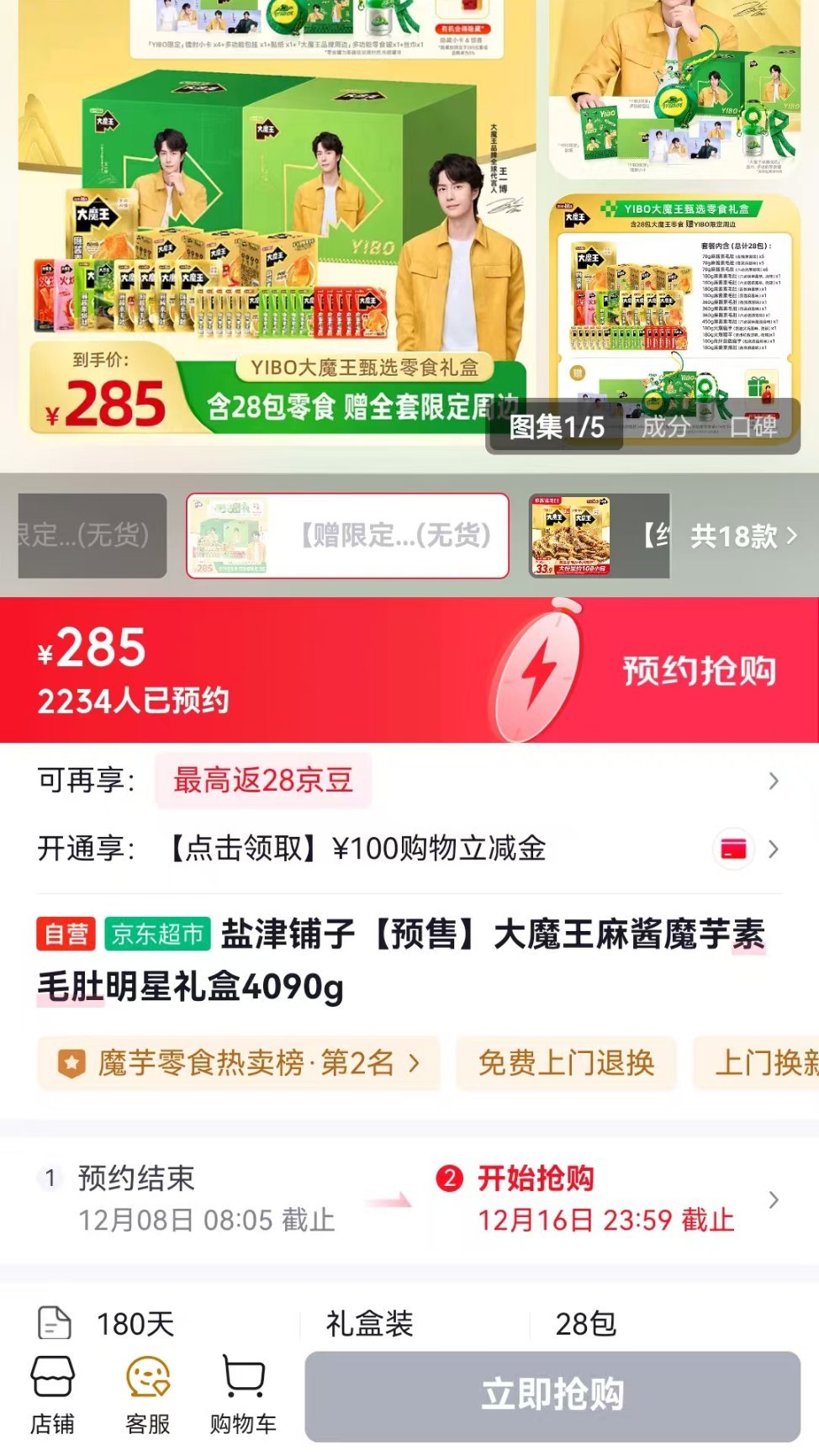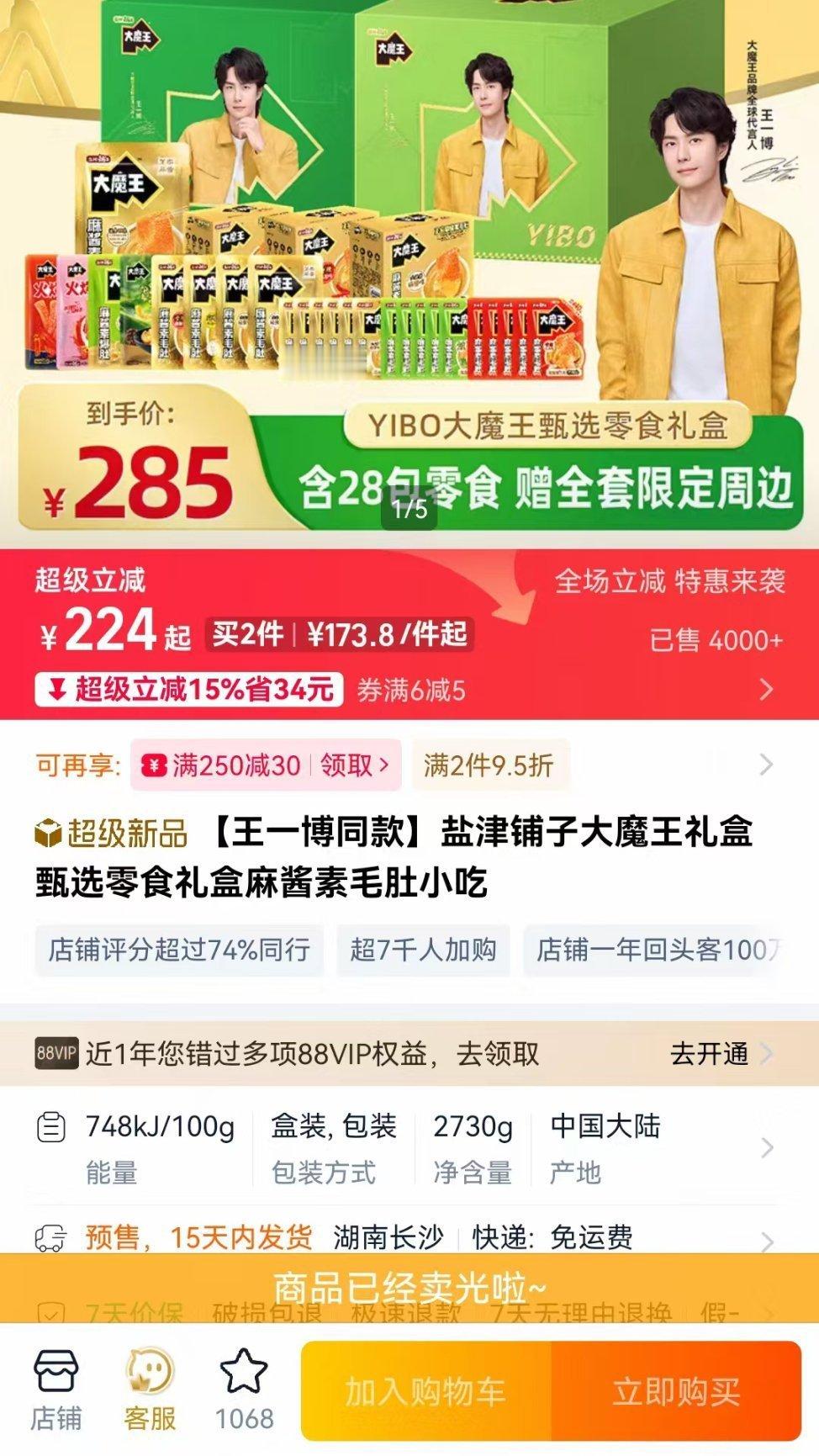 王一博的盐津铺子同款礼盒(tb、jd和dy)三平台都秒售罄啊??????王一博大