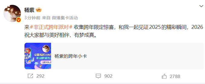杨紫为大家送上 2026 年的真挚祝福,愿所有人都能常伴美好,更盼望大家的每一个梦想都能如愿落地。平淡的表达直抵人心。杨紫祝大家都与美好相伴杨紫2026祝大家都与美好相伴美梦成真