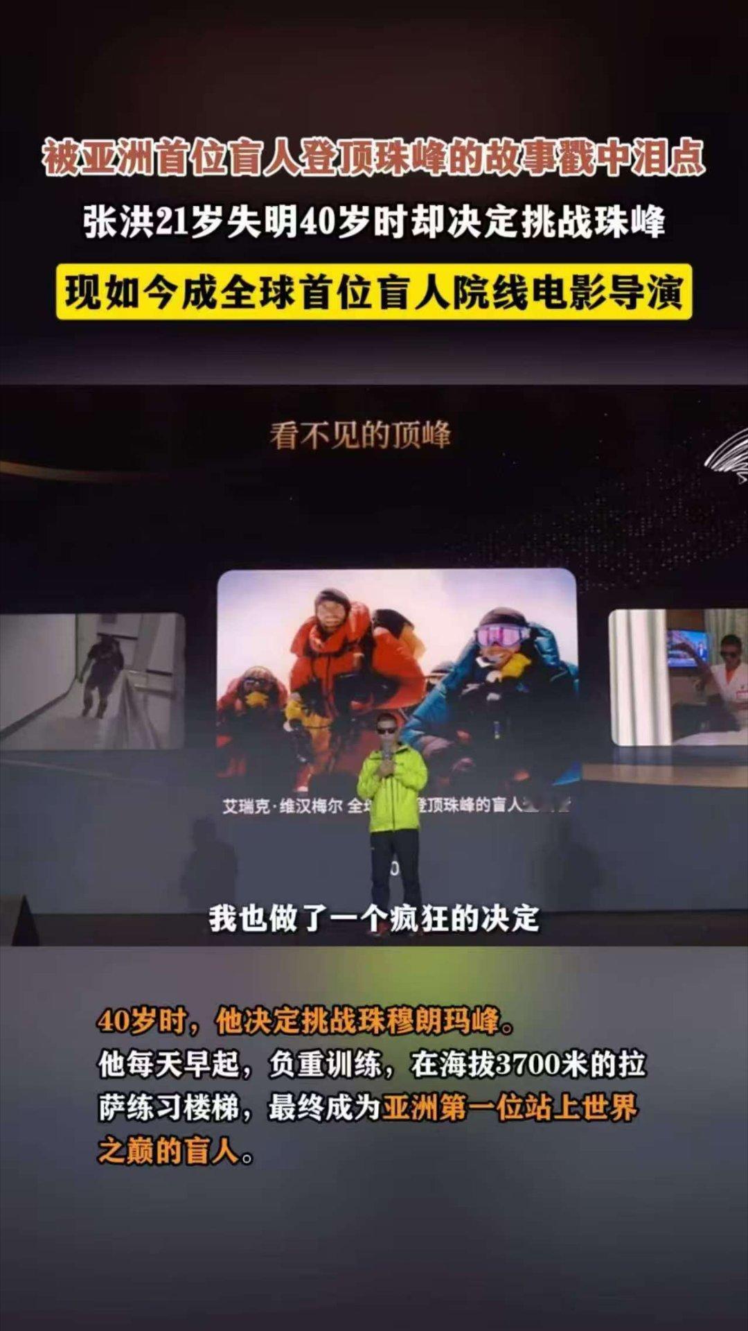 亚洲首位盲人登顶珠峰的故事太燃了 他看不见世界,却让世界看见中国力量!张洪登顶珠峰的每一步,都是对“不可能”的宣战书——太燃了!珠峰登顶者成全球首位盲人电影导演