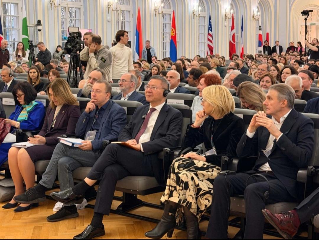 张维为教授在俄罗斯参加学术会议。 12月5日,复旦大学张维为教授到俄罗斯去了,去俄罗斯做什么呢?原来他是受邀参加俄罗斯国际科学与实践大会去了。 该会议的举办地点是在俄罗斯圣彼得堡国立大学。这一次张教授作为重量级嘉宾参会,从张教授坐的位置就可以看出来,张教授坐在第一排。此外,大家熟知的白胡子老先生坐在第二排。 据报道,张维为教授的演讲题目是《文明型国家视角下的中国社会转型模式》,受到了参会者的热烈欢迎与掌声。