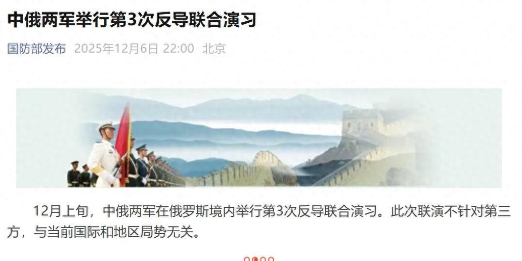中俄军事演习终于到了这个高度了,中俄两军将在俄罗斯境内,进行第3次反导联合演习。不得不说,这一招太绝了,日本应该要老实了。 根据国防部12月6日的官方消息,12月上旬中俄两军已经在俄罗斯境内开启了第三次反导联合演习。 别以为联合军演都是摆样子,反导演习才是真硬核天花板。要知道,各国军队的演习级别里,联合反导绝对是站在金字塔尖的存在,没有之一。为啥这么说?核心就是这玩意儿涉及的全是压箱底的机密,根本不是普通演习能比的。就像咱们过日子不会随便把家里的保险柜密码告诉外人一样,军队的防空雷达部署、雷达信号特征、核心网络数据,这些都是国防安全的命门,平时藏得比啥都严实。 更别说还有国土防空雷达的工作性能、最大探测距离、目标计算数据这些关键信息,每一项都是绝密中的绝密。军事专家张军社就曾解读过,像联合防空反导这种课目,需要两国军队互相开放雷达数据及性能参数,雷达、声呐这类战术数据,没有高度的战略互信根本不可能拿出来共享。 中俄能走到第三次联合反导的地步,说明双方在国防核心领域的互信已经到了无可挑剔的程度,这可不是靠嘴上说说就能实现的。 而且这次演习还会展示完整的国土防空反导作战接战程序,这才是最有含金量的部分。说白了就是从雷达发现来袭目标,到识别目标属性、判断威胁等级,再到锁定目标、下达拦截指令,最后引导反导武器实施拦截的一整套流程。 这套程序平时都是各国军队的核心作战机密,别说对外展示,就算是内部训练都有严格的保密规定。现在中俄敢拿出来联合演练,一方面是展示双方军队的协同作战能力,另一方面也证明这套流程已经成熟到具备完全的实战价值。 要知道,现在西太平洋的安全局势可不太平,尤其是日本最近的动作格外频繁。前段时间日本首相高市早苗在国会答辩时,居然直言台湾出事可能直接威胁日本生存,还把出动军舰对台动武列为可能触发集体自卫权的场景,这话一出无疑是在搅动地区局势。 更别说日本还在不断增加防卫预算,采购F-35战机,升级雷达系统,跟着美国在亚太搞各种军事合作,大有一副要搅乱地区和平的架势。 而中俄这次反导联合演习,就是对这种冒险倾向最直接的警示。可能有人会说演习声明里写了不针对第三方,但明眼人都能看出来,这种级别的反导能力展示,本身就是一种强大的战略威慑。日本作为一个岛国,国土纵深极小,工业和人口都高度集中在少数城市,本身就极度缺乏战略防御能力。 咱们都清楚,中国的东风系列导弹射程早已覆盖日本全境,东风-26更是能精准打击港口、机场等关键目标,而俄罗斯从远东发射的锆石导弹,速度能达到10马赫,几分钟就能抵达日本本土,日本的宙斯盾系统拦截率还不到三成。 现在中俄又展示了联合反导能力,这意味着双方不仅能各自应对导弹威胁,还能协同作战构建更严密的防御体系。对日本来说,这无疑是一盆冷水,要是还看不清形势,继续跟着美国在亚太搞事,最终只会把自己置于危险的境地。毕竟经济上日本离不开中国市场,能源上离不开俄罗斯供应,要是真把局势搞僵了,受损的还是自己。 其实从历史合作来看,中俄两军的联合演习一直在不断升级。从之前的海上联合演习突出防空反导课目,到现在直接开展专门的反导联合演习,这背后是两国战略互信的持续深化,也是应对地区安全威胁的现实需要。张军社就说过,中俄两国都面临严重的导弹威胁,进行防空反导演练有助于提高两军防空反导能力,更好地维护各自国家和地区的安全。 说白了,这次中俄第三次反导联合演习,就是用最硬核的方式告诉外界,两国维护地区和平稳定的决心和能力不容小觑。对那些总想在亚太兴风作浪的国家来说,这就是最直接的警告。 日本要是真聪明,就该收起那些不切实际的幻想,老实本分地维护地区和平,别到最后搬起石头砸了自己的脚。毕竟在绝对的实力和严密的协同防御面前,任何冒险举动都只会自食恶果。