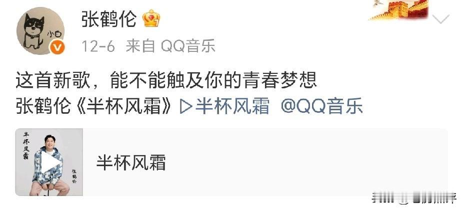 张鹤伦6号的南京专场,返场时他首次唱了自己新出的单曲《半杯风霜》,这首有古风韵味的歌曲非常好听。 张鹤伦最近几年每年都会有新歌发行,现在他的歌单除了粉丝熟悉的《小娟》、《给自己的歌》、《半日闲》等等外,又多了一首原唱歌曲。 郭德纲3月份直播时说下半年要给岳云鹏开演唱会,还会给孟鹤堂张鹤伦秦霄贤开演唱会。现在岳云鹏的演出已经圆满结束了,也不知道孟鹤堂张鹤伦他们的演唱会什么时间能开? 岳云鹏开演唱会被质疑的一个理由是岳云鹏没有原创歌曲,只会唱五环,却不记得岳云鹏有好几首原唱歌曲。如果张鹤伦要是开演唱会,会不会有人质疑他只会唱小娟呢?