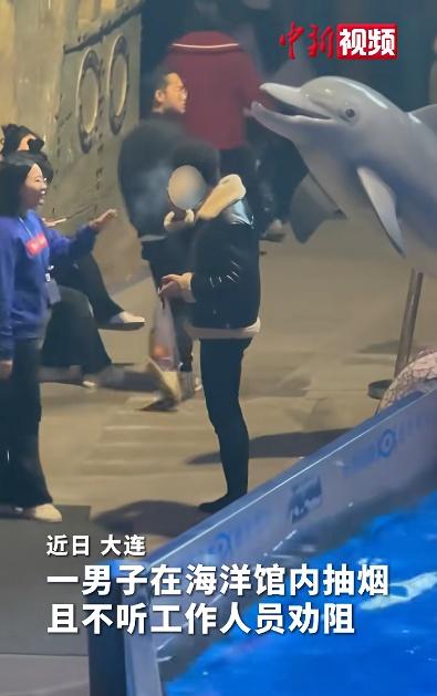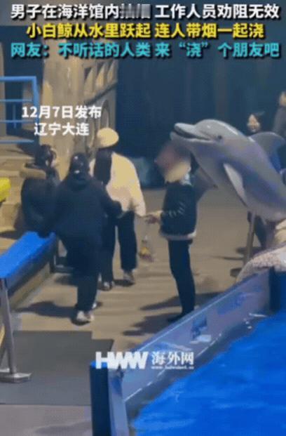 太有灵性了!辽宁大连,男子在海洋馆内抽烟,工作人员劝阻无效,没想到,水池里的小白