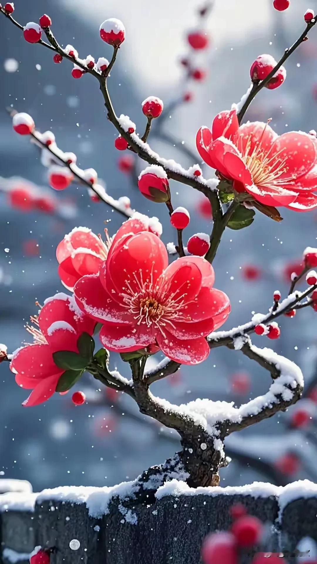花落叶枯秋瑟瑟, 败荷柳瘦雪飞飞。 寒梅傲霜春欲近, 玉树琼花迎春归。