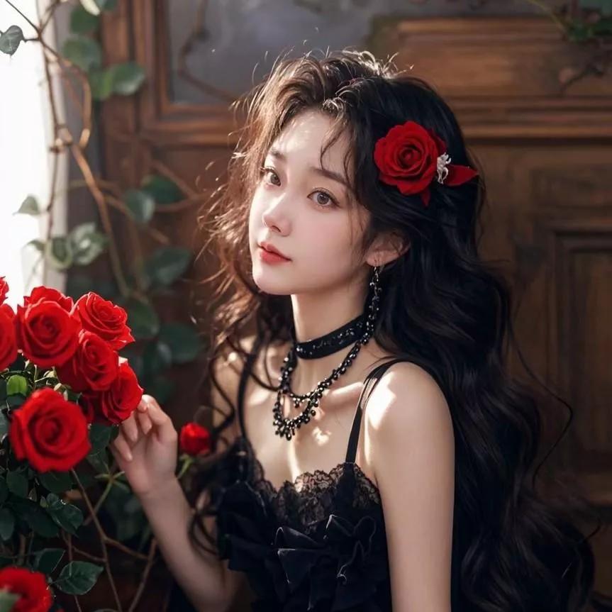 黑发红衣的少女,手捧红玫瑰,浪漫又神秘。红衣微笑少女 红衣少女自拍 红衣女拍照 红玫瑰新娘手捧 红衣小小姐姐 红衣蔷薇少女 暗红玫瑰写真