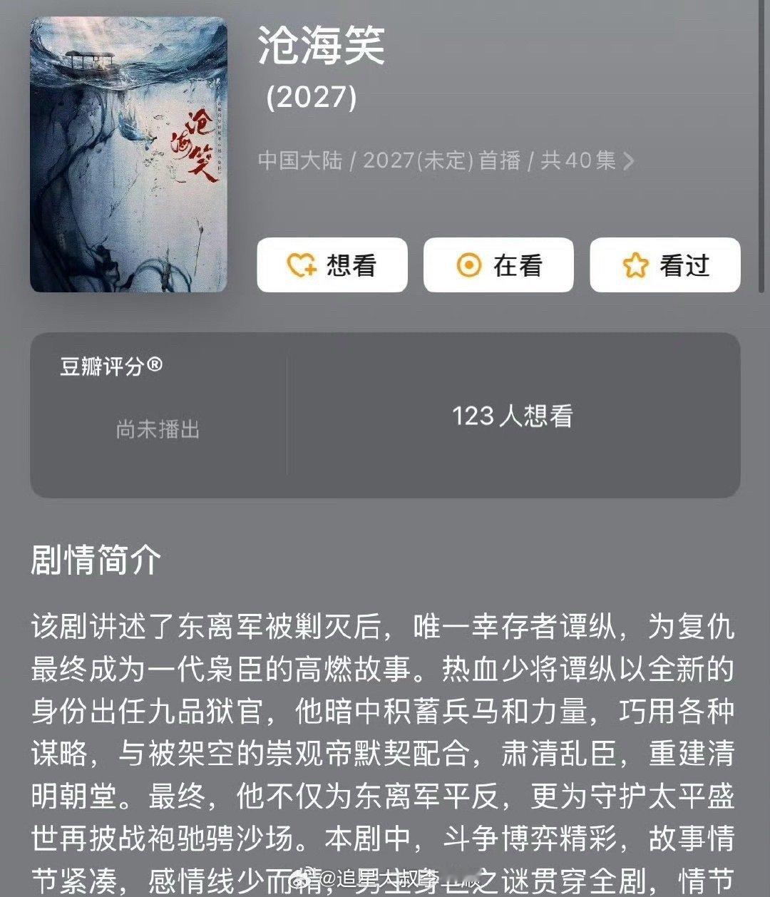 🍉成毅、田栩宁《沧海笑》2026年一季度开机成毅田栩宁 沧海笑