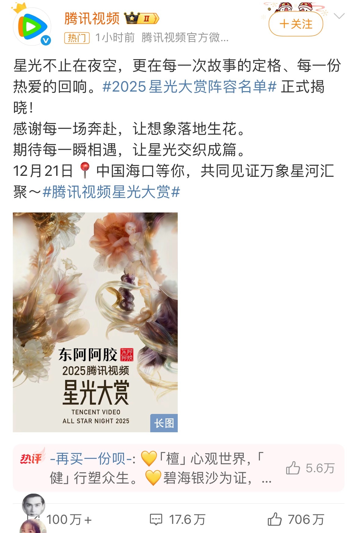 星光大赏官宣这条已经空到700w👍🏻星光大赏阵容官宣