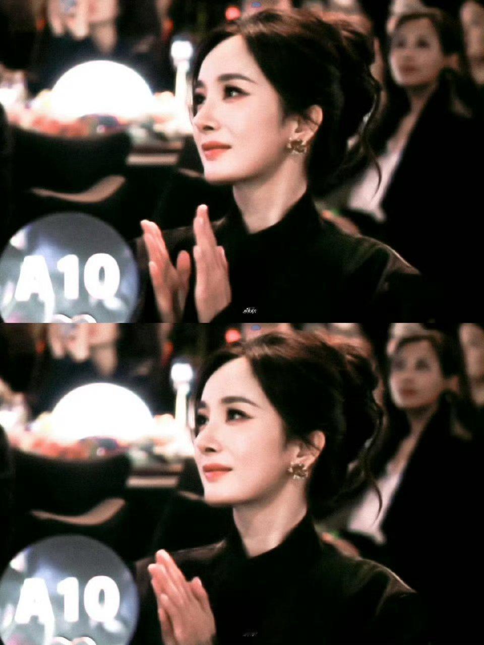 于和伟起身领奖瞬间,镜头扫过台下杨幂,全程神情专注紧盯舞台,板正坐姿搭配抿紧的嘴