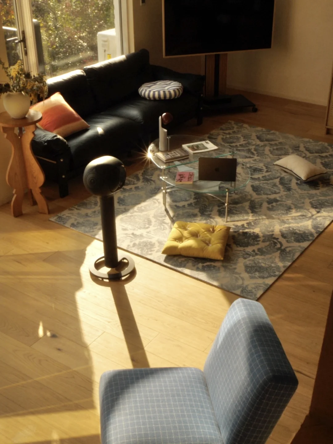 新家装修了4个月,一楼所有房间都打掉做成开放式书房与客厅格局,布置成我喜欢的包豪斯风格。还保留了室外阳台,阳光从一整面落地窗涌入,穿过玻璃茶几泛起光芒,又在蓝白花纹地毯上投下灵动的光斑。