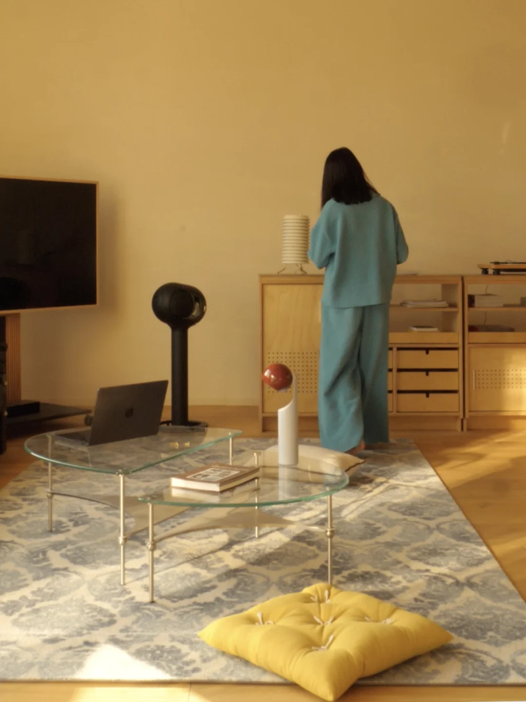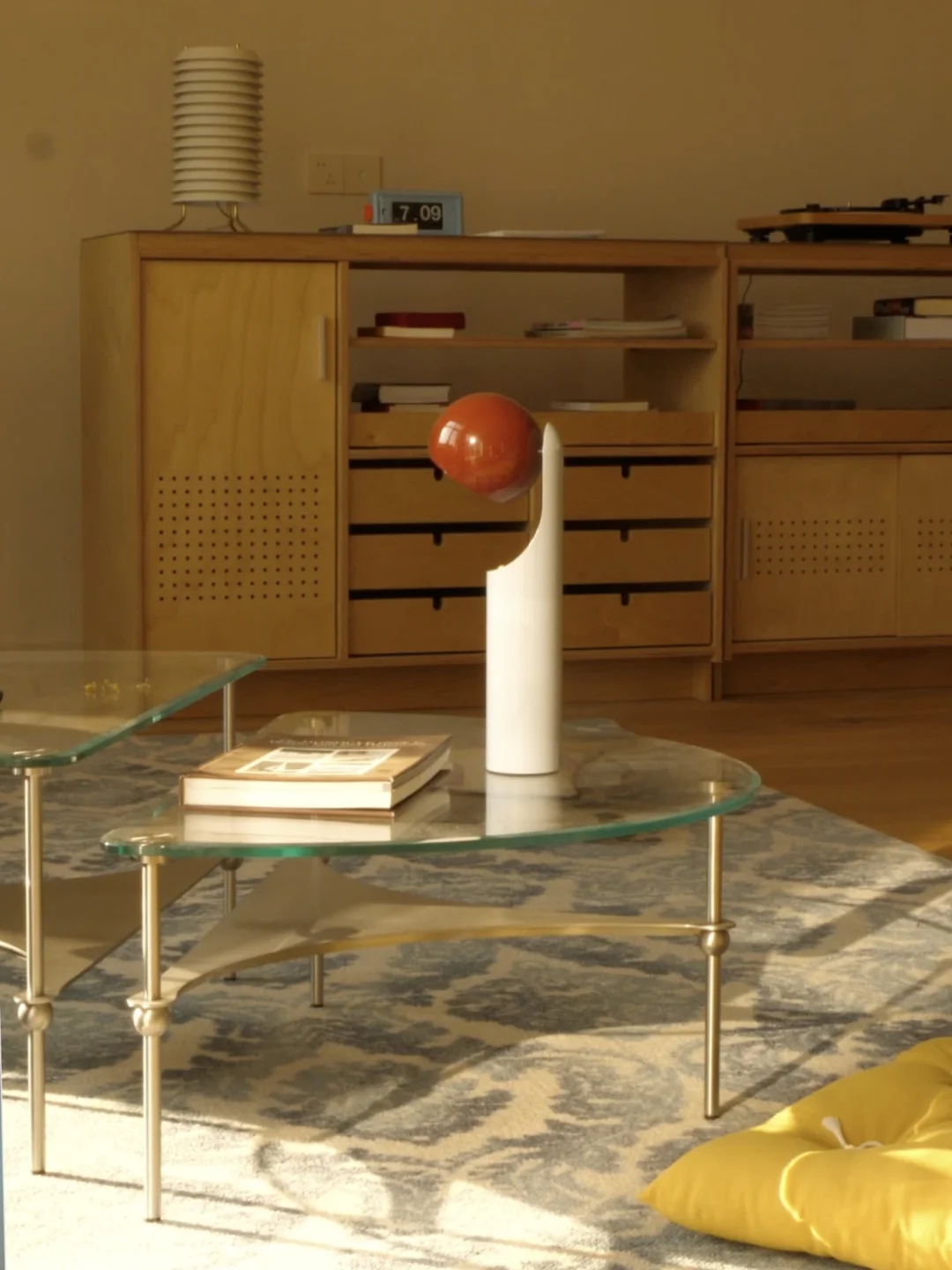 而在客厅大面积的哑光材质中,这张「氧际银翼茶几组合玻璃茶几」,玻璃和不锈钢带来包豪斯经典材质的碰撞,让整体的视觉节奏变得轻快,空间有了“呼吸感”。金属的冷静质感,恰好平衡了空间的暖色调,多了一份现代风格的筋骨。