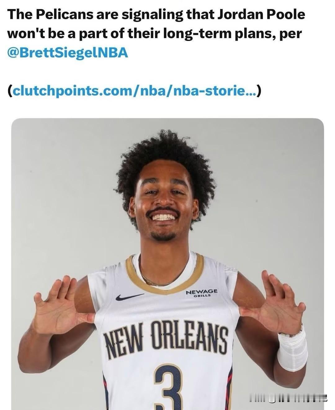 重回勇士可好? 据美名记Brett Siegel报道,前勇士冠军球员乔丹-普尔如今在鹈鹕队的处境非常尴尬,属于可有可无的地步。 赛季至今,普尔仅出场了7场比赛,场均可以拿到17.3分1.7篮板3.4助攻。 处境艰难,美媒ClutchPoints建议普尔重回成名之地金州勇士队。 普尔重回勇士队障礙不大,唯一值得担心的是与追梦的关系,如何处理与追梦的关系将是重点。[吃瓜群众][吃瓜群众]