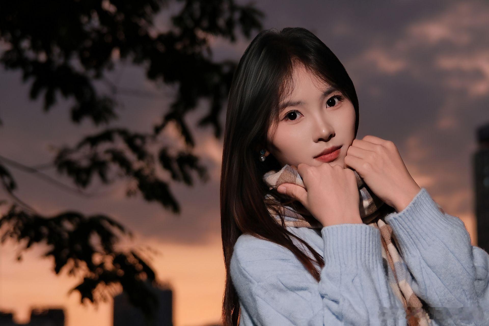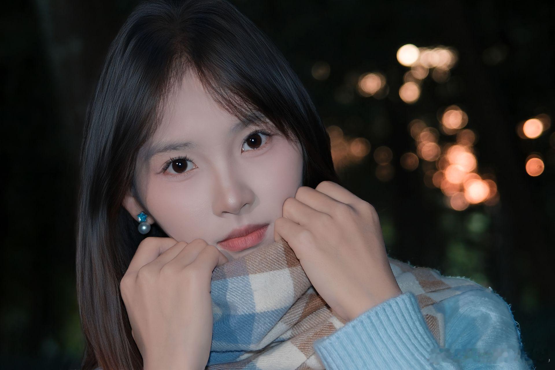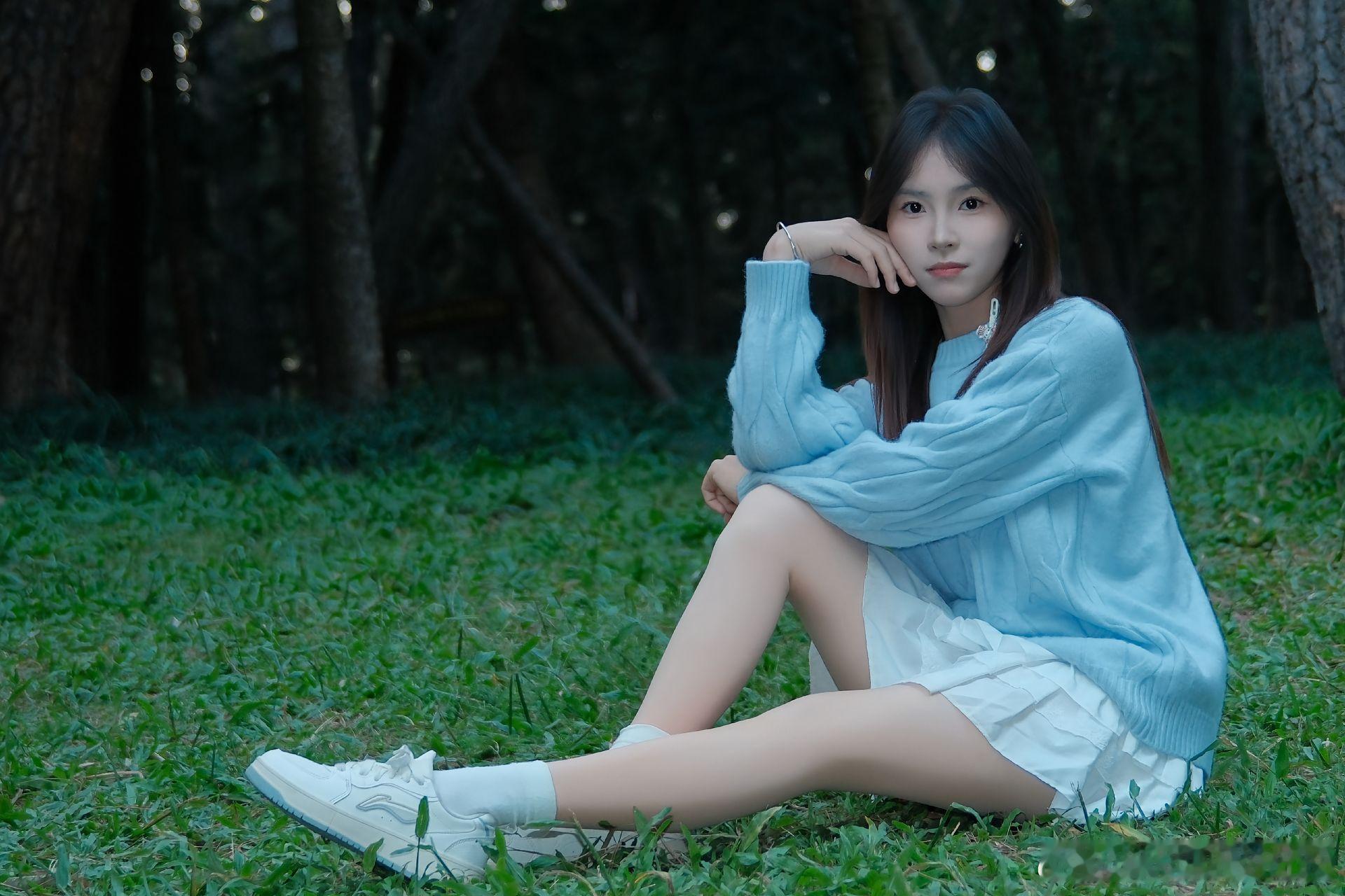 穿衣搭配 蓝色毛衣,白色裙,格子围巾,光腿神器,标准美少女美女绘梦长廊