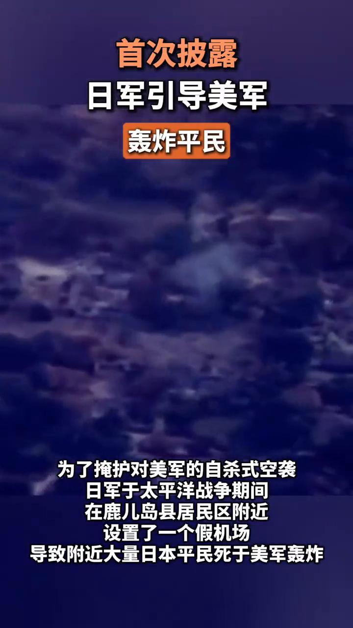 首次披露:日军引导美军轰炸平民。 为了掩护对美军的自杀式空袭,日军于太平洋战争期间在鹿儿岛县居民区附近设置了一个假机场,导致附近大量日本平民死于美军轰炸。 据《南日本新闻》8日报道,一段首次披露的视频显示,日军在鹿儿岛县居民区附近设置了一个假机场,导致附近大量日本平民死于美军轰炸。