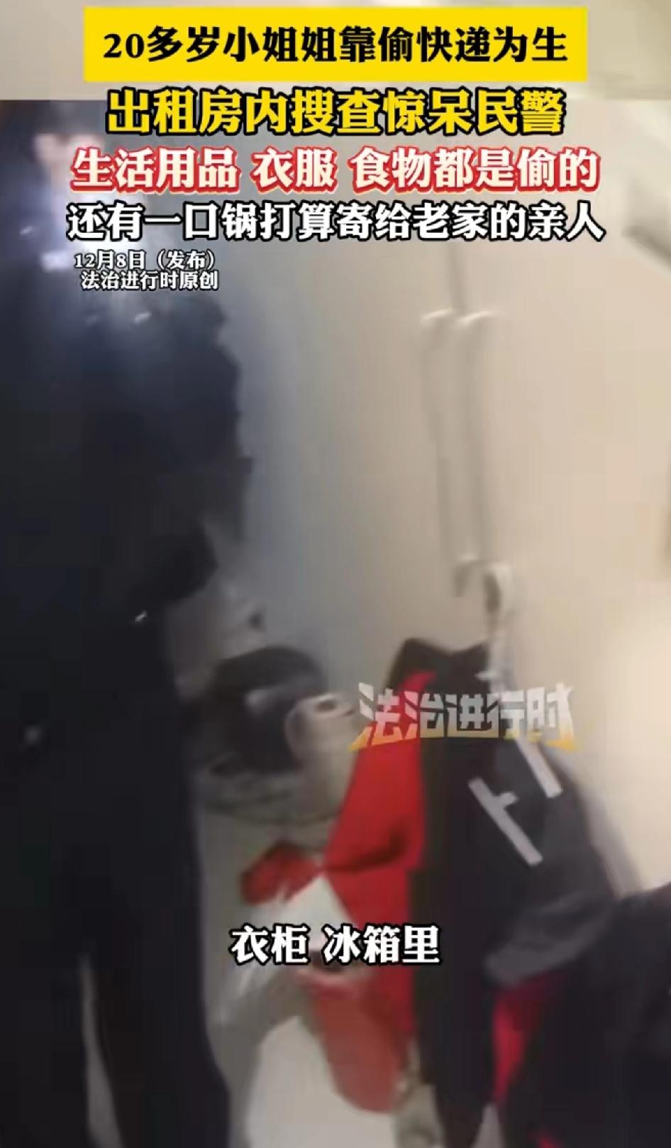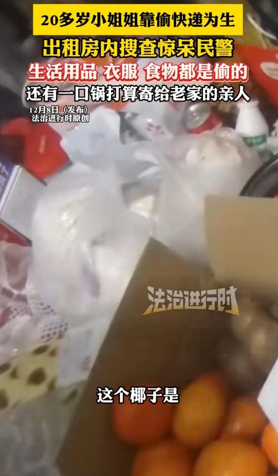 20岁小姐姐靠偷快递为生,出租房内搜查惊呆办案民警,生活用品、衣服、食物、水果、
