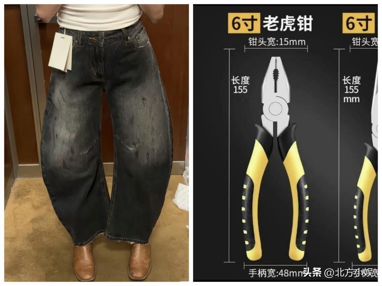 弯刀裤的设计灵感是不是来源于老虎钳啊,这也太像了吧!弯刀裤的流行趋势让人难理解,穿上弯刀裤,好好的大腿变成了罗圈腿,而且有的裤腿还特别长,穿上踢了嘡啷的,1米8的个子穿上它,直接缩成了1米5。 不知道谁设计的这弯刀裤,想象力太丰富了,也真敢设计啊!