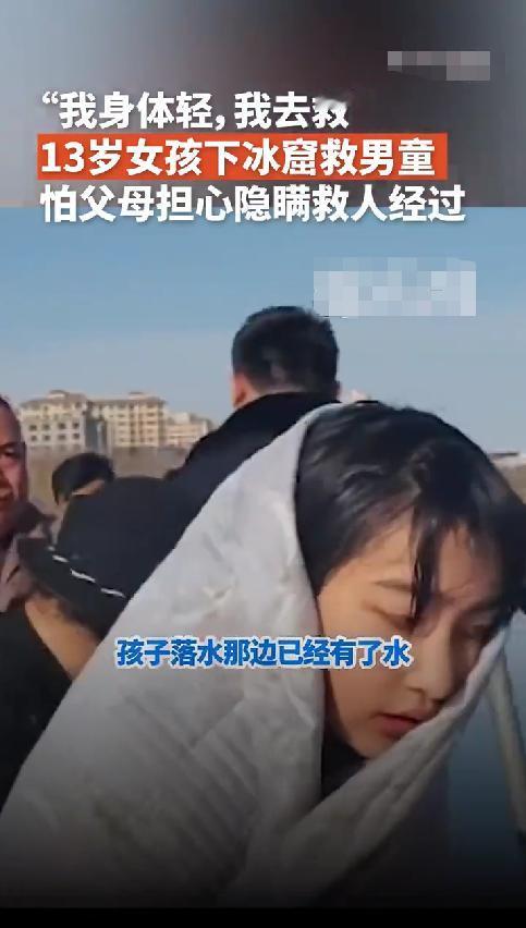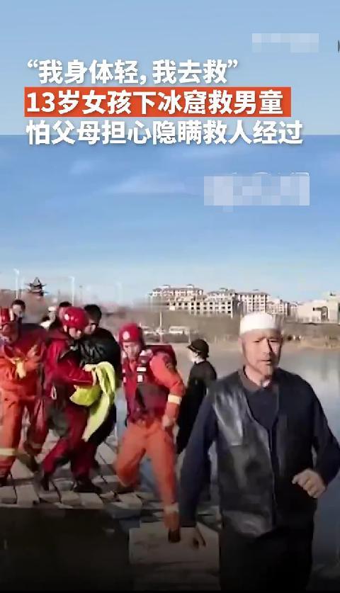 “阿姨,我身体轻,我下去救人!”这是出自13岁的女孩的说的话! 这个季节的宁夏,已经是零下好几度了,而就是这么冷的天,却上演了一场很有温度的救援。 就在12月6日,宁夏的同心县,一名3岁的孩童在水边玩耍时,不小心滑进了结了冰的湖里,孩子瞬间被冰冷的湖水淹没,此时围观的群众也比较多,但大家都不敢下去,毕竟湖面的冰太薄了,根本承受不住身体的重量。 就在这危急关头,年仅13岁的初中女孩李佳婷挺身而出,说“阿姨,我身体轻,我下去救人!” 说着话的时候,就脱掉外套,拽着路人甩过来的黑色塑料管,就趴在冰面上向着这名落水的3岁孩童爬去,并且还时不时的安慰落水的小孩。 令人最担心的事情还是发生了,13岁的李佳婷还没有爬多远,冰面因承受不住李佳婷的重量就裂开了,李佳婷也落入了水中,她不顾冰冷的湖水,义无反顾的游过去,最终把这个3岁小孩救了出来。 救护车此时已经赶了过来,医护人员接过这个小孩后,展开了抢救,所幸孩子没事。 而李佳婷披着路人递过来的毯子,就悄无声息的骑着电车消失在人群中。 回到家,被家人问及为啥衣服湿了,还谎称是洒水车喷湿的,直到当晚11点多,被其姑姑在网上发现其救人的事情,家里人才知道。 第二天,被救小孩的家人带着礼物和现金找到了李佳婷的家里,被其家人委婉拒绝,最终仅仅留下了礼物。 对于13岁的孩子来说,能做出这样见义勇为的事情,真的是精神可嘉,值得所有人去学习。
