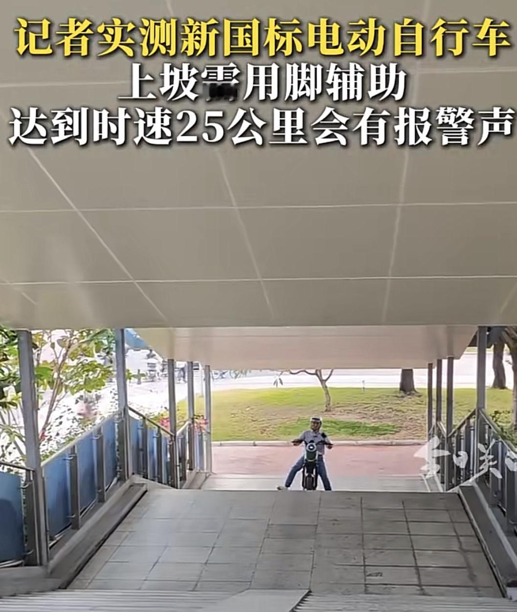 新国标遇上斜坡路时,劝你还是下车推着走吧! 近日广州有人在新电动车足电情况下测试了它的实际功能,第一段斜坡勉强,第二段有点吃力,到了第三段就完全用脚蹬作辅助才终于上了。这种动力在路上下点雨,这么陡坡的坡,说不定就摔了,年轻男女可能还好点,腿短的就比较麻烦。 有些小区建在山上的,坡道又长又高,车主回家前最好给家人打声招呼:“我回来了!”他们立刻知道应该怎么做了,免得到时候自己推着进屋。 (来源:今日关注) 很多人不懂什么是新国标,国标是指强制性执行的一个标准,对于安全方面是最低要达到的一个标准,其他的比如企业标准,行业标准都必须在国标之上进行制定。车子能不能应付各种路况,那就不是造车企业的事了,新国标设计能通过认证认可,说明还是可行的。