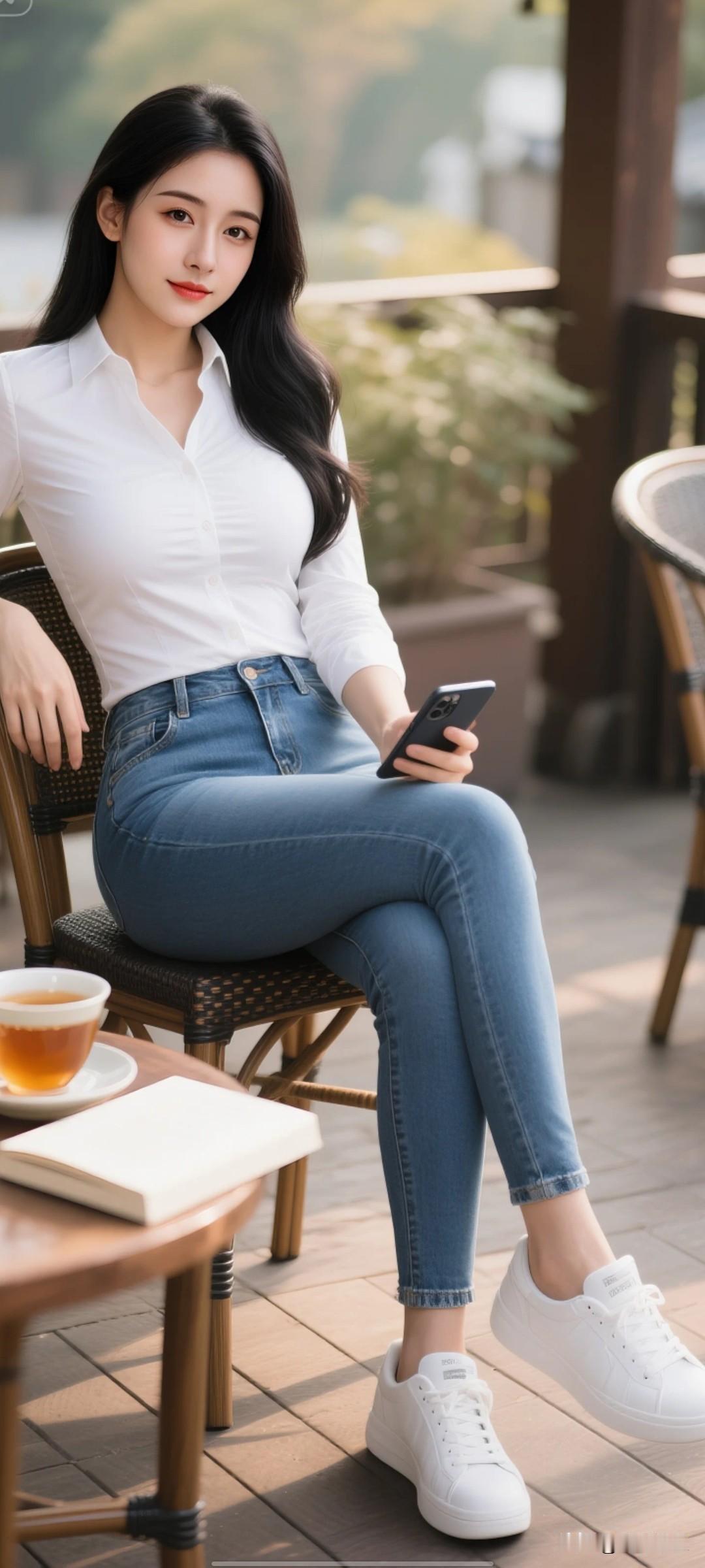 悠闲午后,咖啡与手机相伴,享受宁静时光。