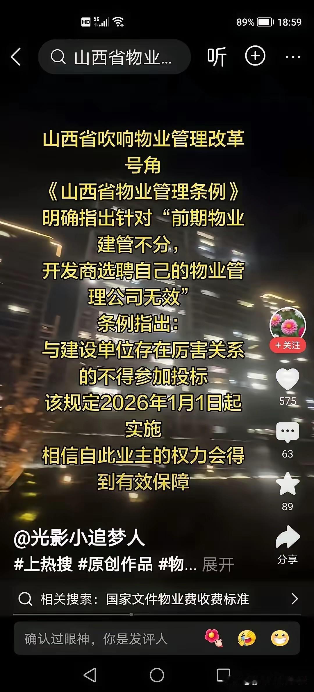 物业要变天了。 昨天新闻已经报道了,山西省物业从2026年1月1日起,执行新的物业管理条例,真是让人拍手叫好。前期物业公司、开发商自聘物业公司及与开发商有关系的物业公司无效,这果断的一步,带动了全国的网友议论纷纷,认为既然山西省做出了这么果断的措施,为何全国各地不成立专门机构对物业公司进行审计,对全国物业公司进行深入调查,听取业主的意见,查清物业公司的收入与支出,整治物业与业主委员会勾结的腐败现象,让腐败的人付出代价,让人民满意,让人民群众监督,让人民说了算!山西省这一步走得果断,很能打击腐败,让人看到顺应民意的决心与魄力,希望全国各地都能学习山西省这一步,打击腐败,更好地为人民服务!