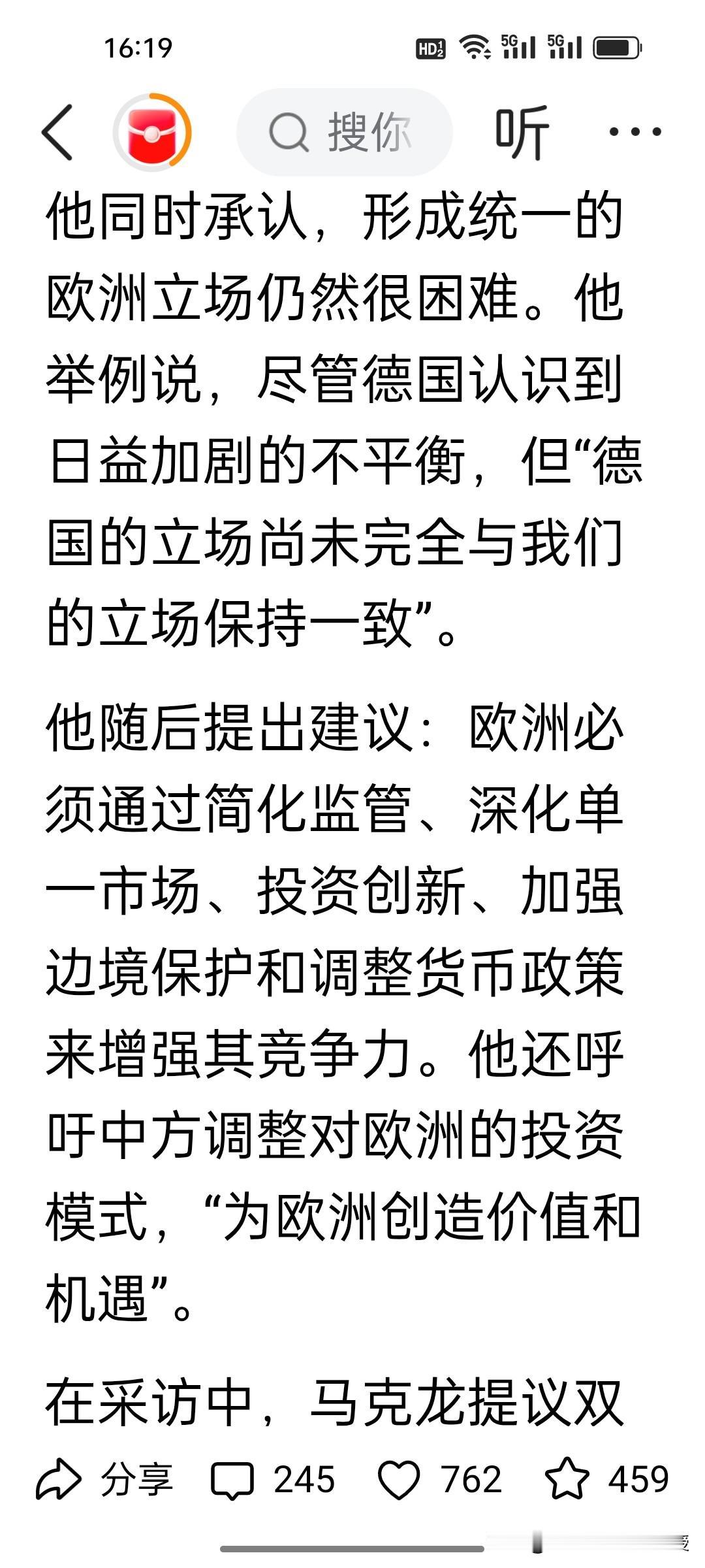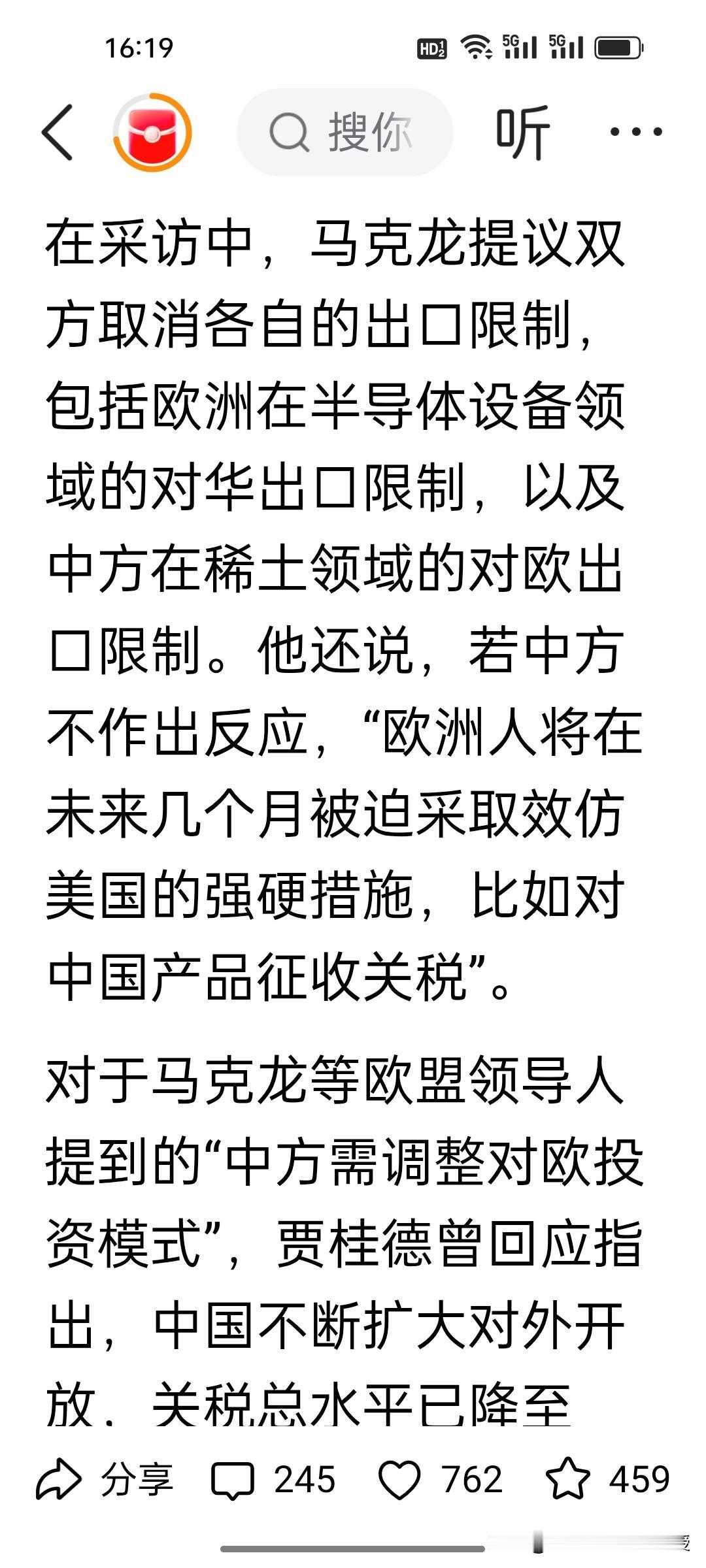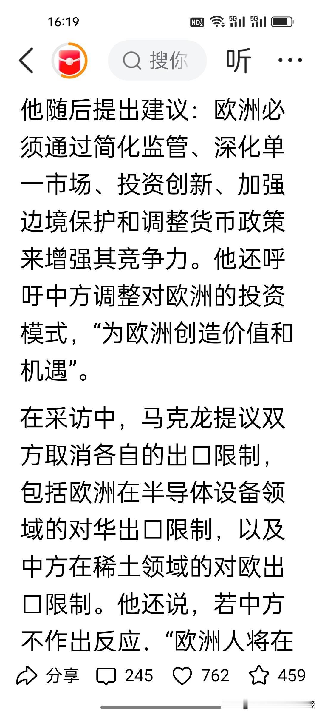 马克龙三天访华结束回去后说了句坦白的心里话!他在接受法媒采访时说,中方应通过外国投资来拯救欧洲。他已经认识到中方的技术已经领先于欧洲,目前欧洲因为受到美国的挤压以及中国的超强竞争力的影响,欧洲工业已经是“生死存亡”了。 马克龙提议要取消中欧双方的出口限制,如果中方不做出反应,欧洲或许会效仿美国的做法,对中国产品加税。 马克龙完全是站在欧洲的立场上考虑问题,让中国来当“救世主”,让中国要“达则兼济天下”,可是马克龙要明白,中欧经贸的本质是优势互补、互利共赢,绝非单方面“拯救”。 中国企业赴欧投资的前提是公平环境与合理回报,不可能以牺牲自身利益为代价。欧洲的《数字服务法案》翻云覆雨,已经在这几年罚了谷歌82亿,罚了Meta,苹果7亿,现在又罚马斯克1.2亿欧元,马斯克直呼要取消欧盟。这样的营商环境谁来投资都瑟瑟发抖吧?另外,取消出口限制需双向对等,威胁要给中国加税只会两败俱伤,唯有平等相待、相向而行,才能让中欧合作行稳致远。