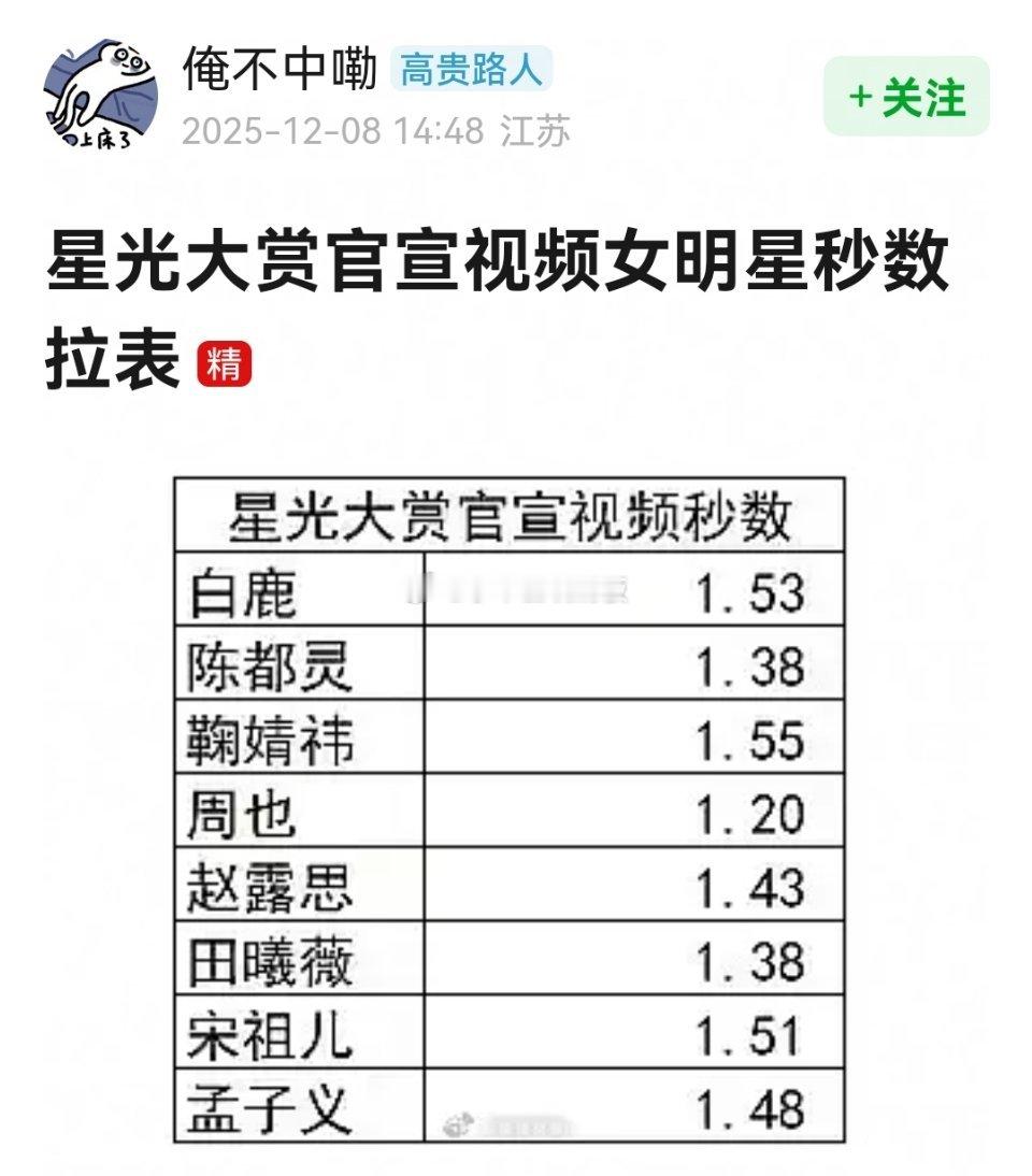 星光大赏官宣视频女明星秒数拉表又开始了🚬
