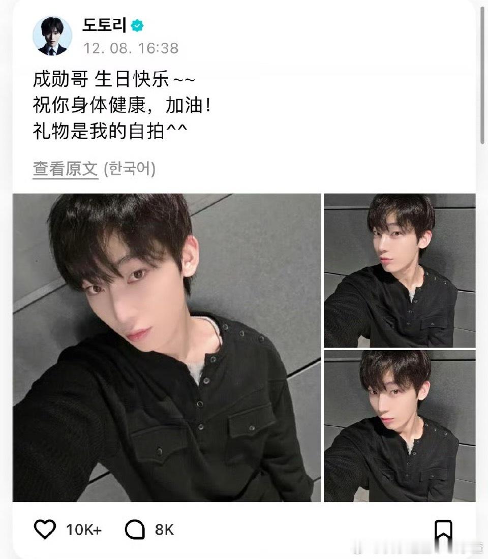 金善禹喜剧人:“成勋哥 生日快乐 礼物是我的自拍!”