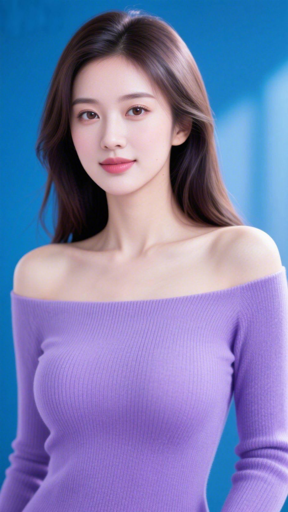 浅紫遇晴空 一抹柔紫裹挟着温婉,撞入澄澈的晴空蓝。细腻的针织纹理轻覆周身,如