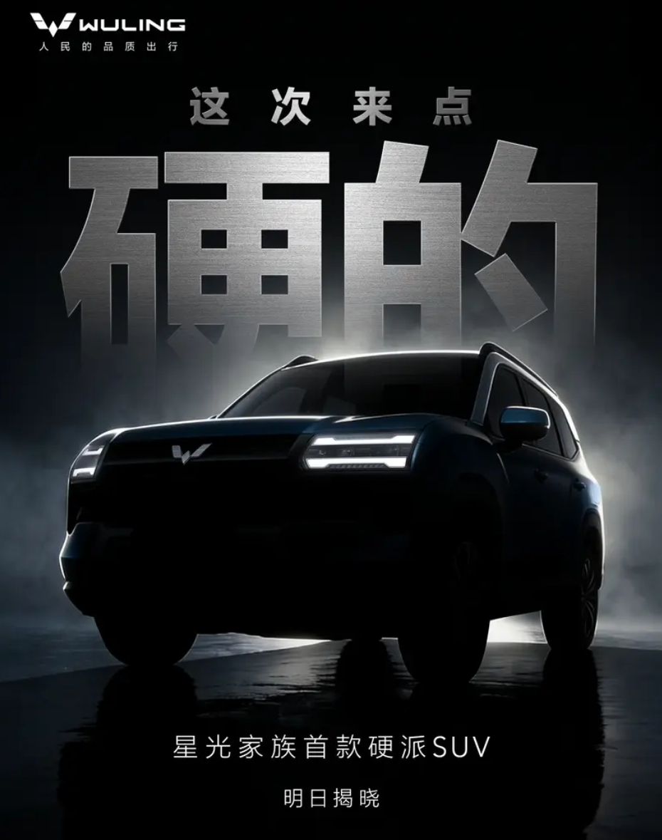 车若初见 五菱的硬派越野来了,具体细节明天揭晓,不过看图片应该就是之前发布的星光560,看灯就能对上号,星光730当初的含义是7座,3套动力和0焦虑,星光560的6对应的是什么?没准留了个彩蛋。